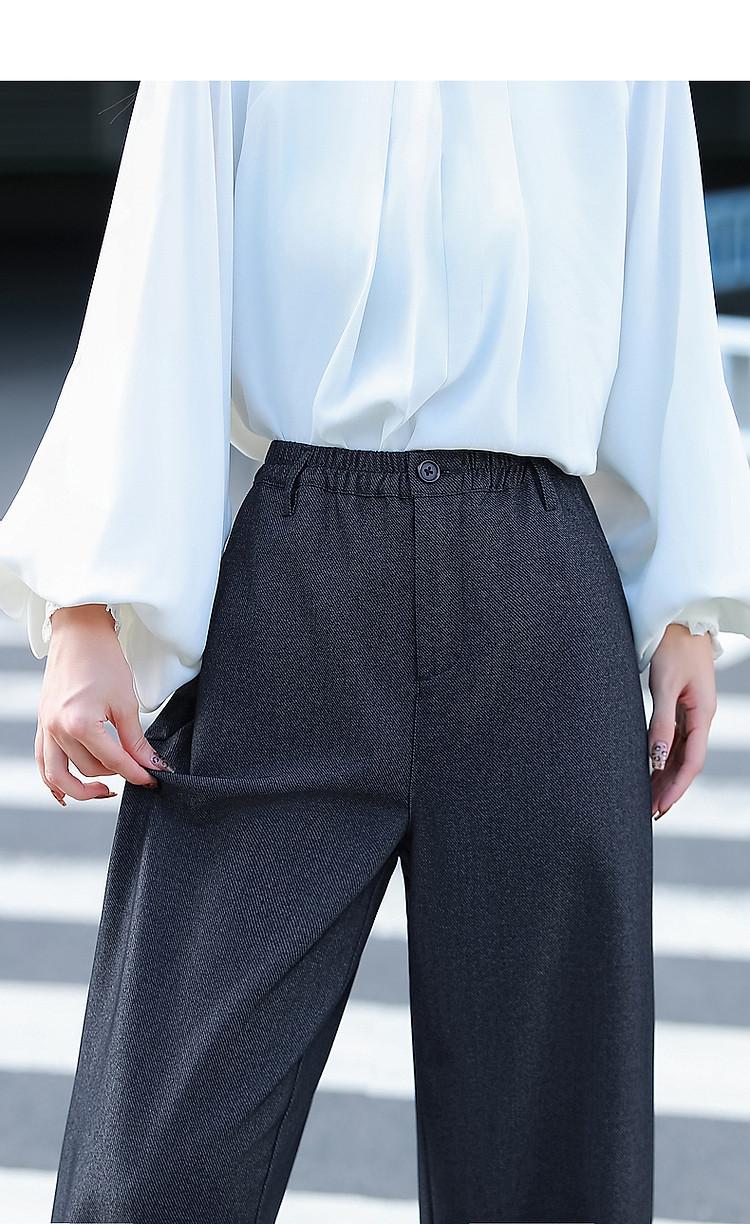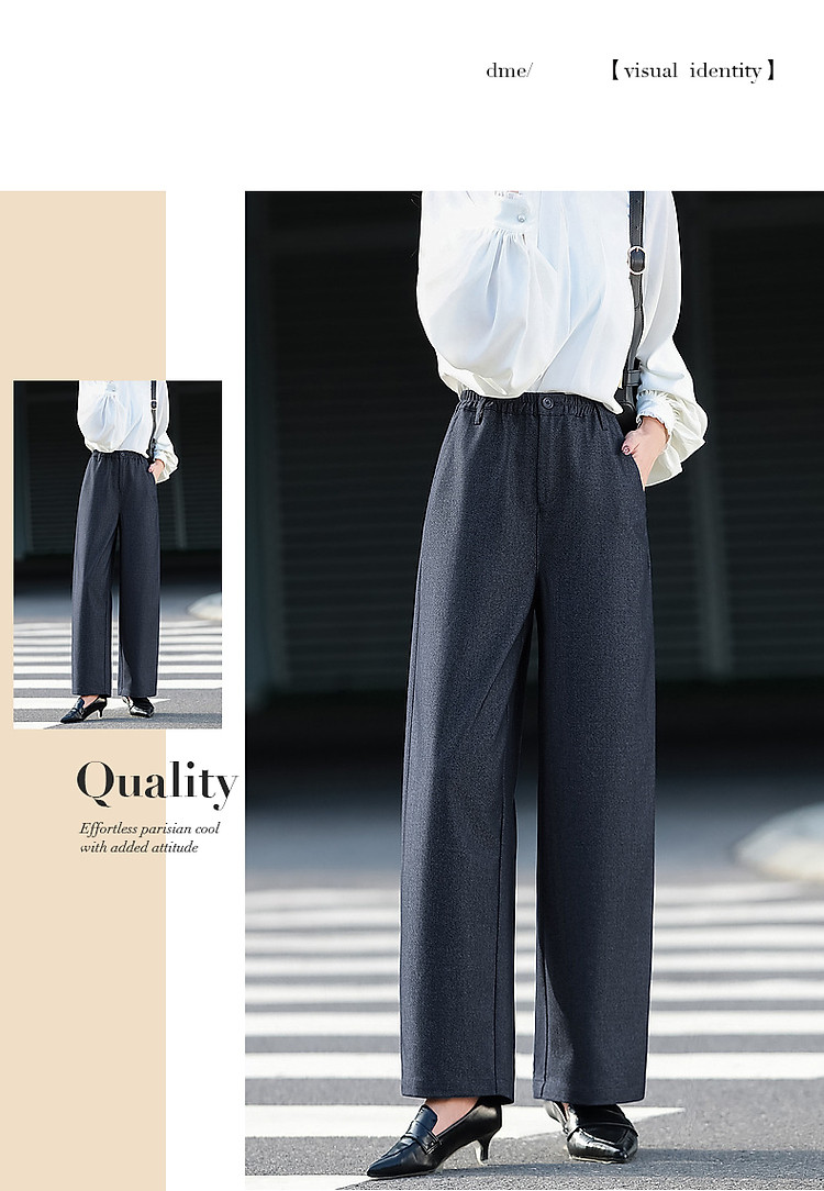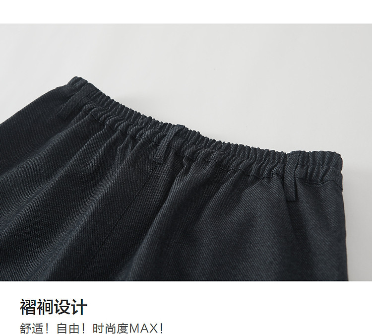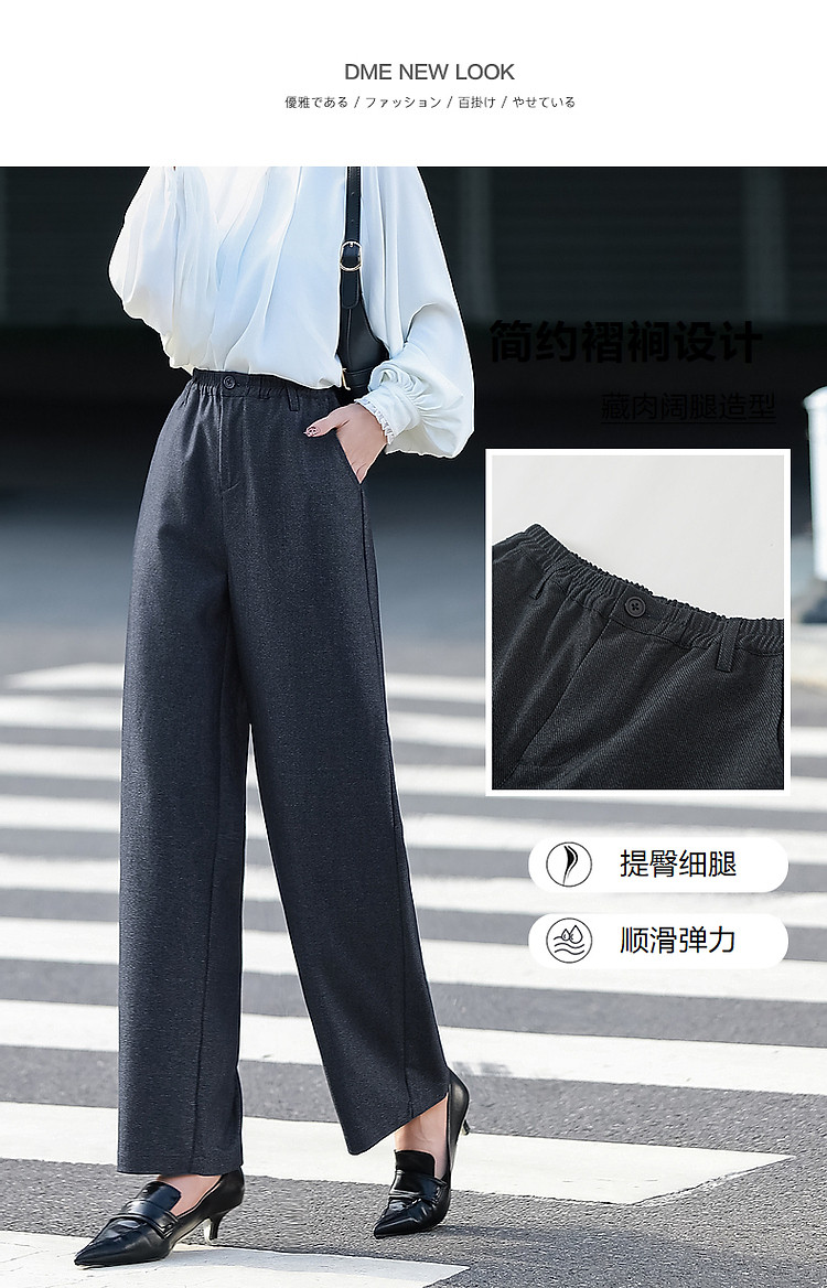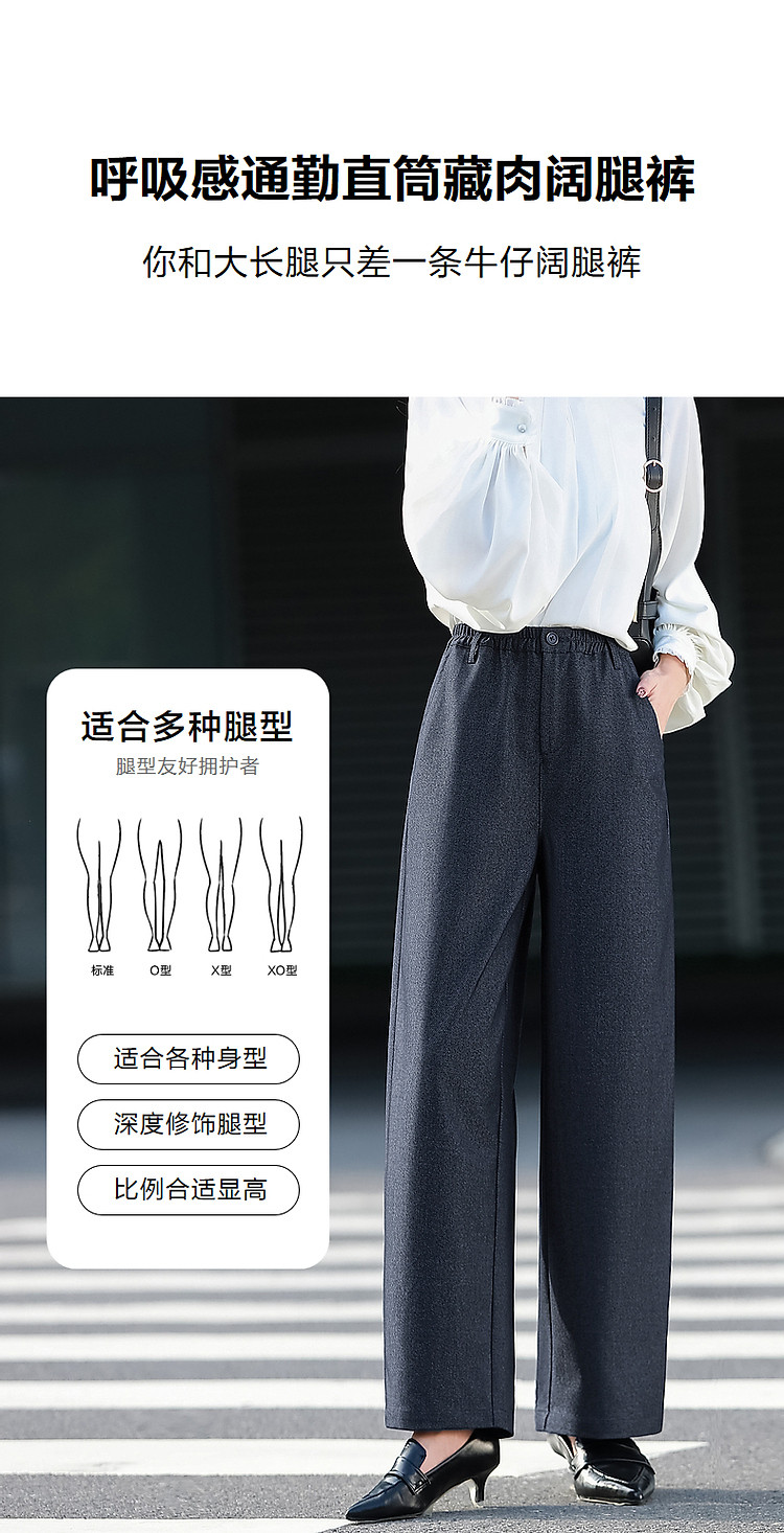 商品名称:【呼吸感通勤】秋橡筋腰宽松直筒藏肉设计感褶裥阔腿牛仔休闲裤 483649