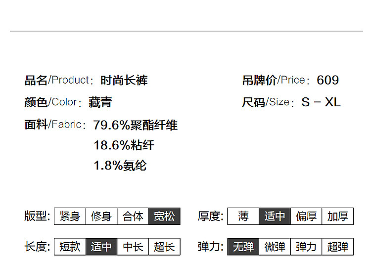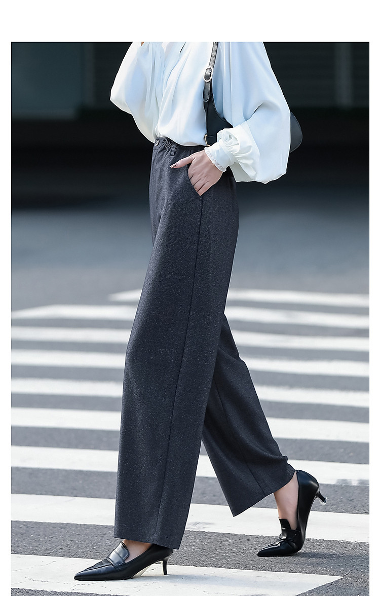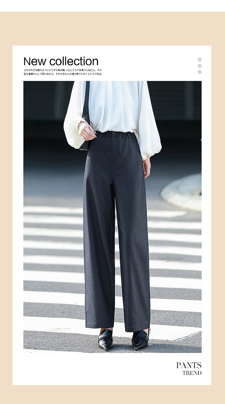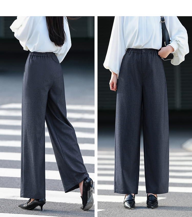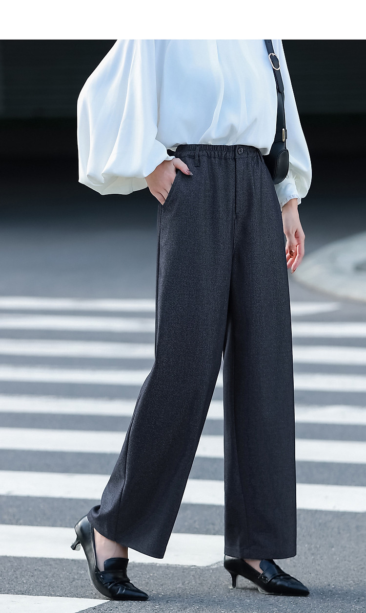 商品名称:【呼吸感通勤】秋橡筋腰宽松直筒藏肉设计感褶裥阔腿牛仔休闲裤 483649