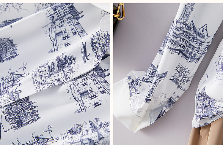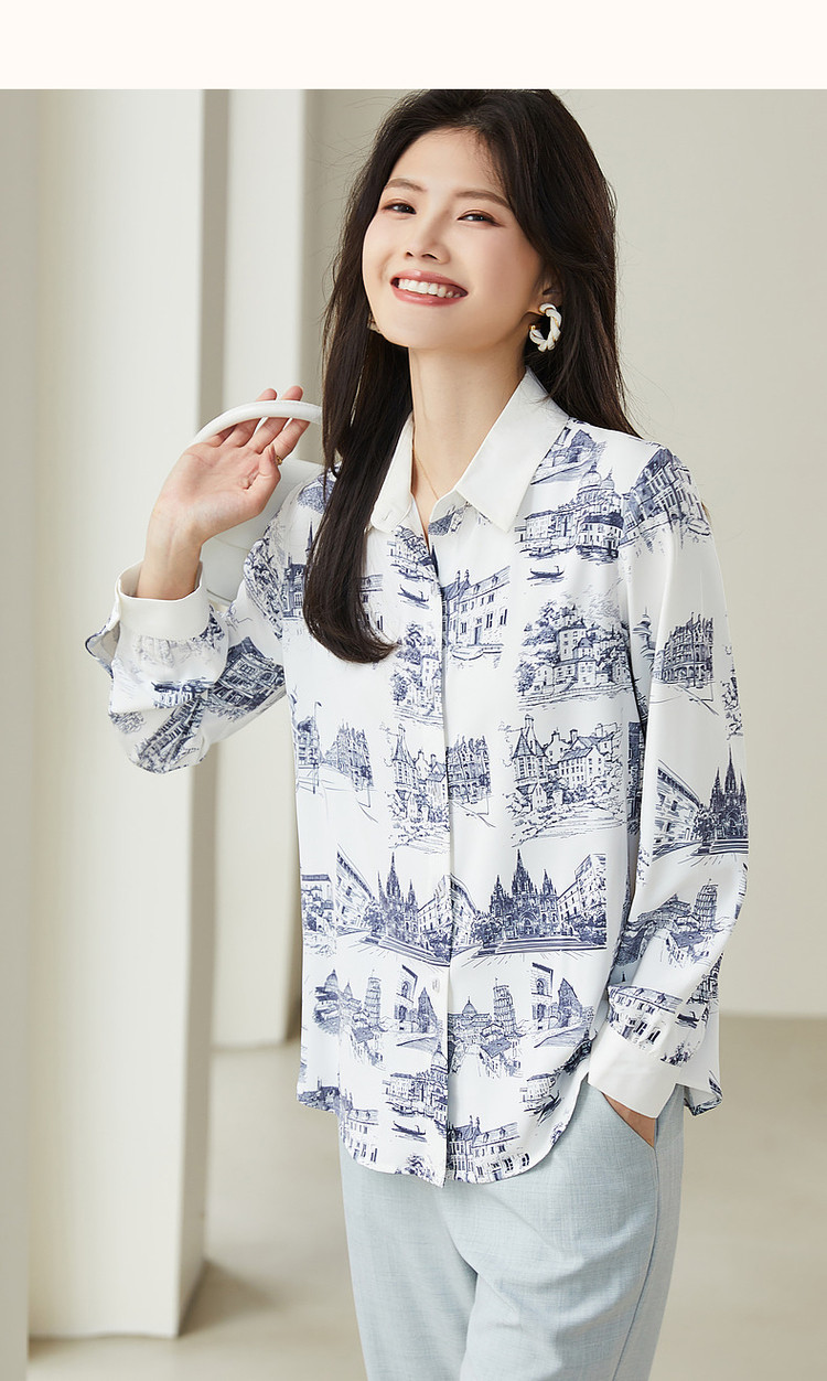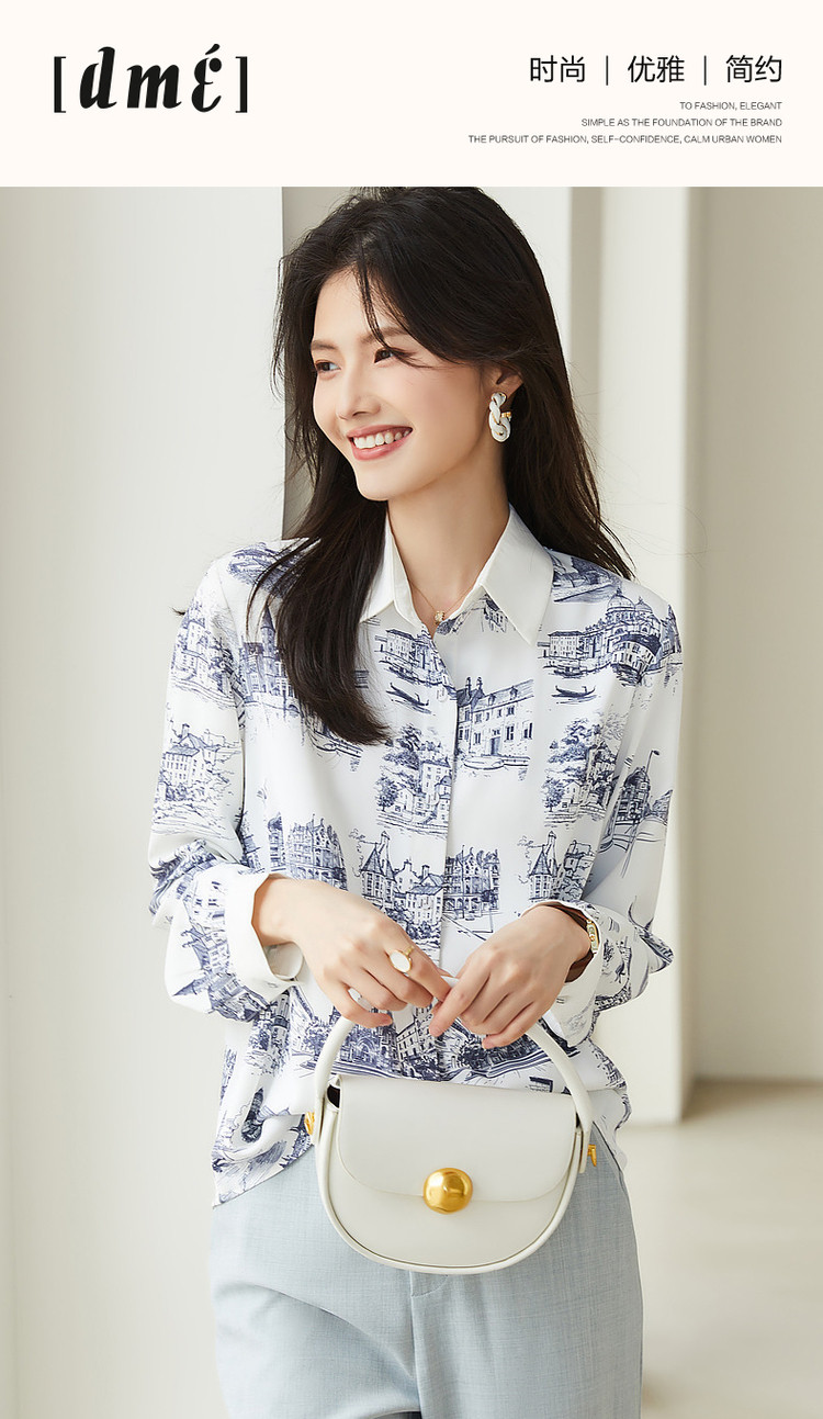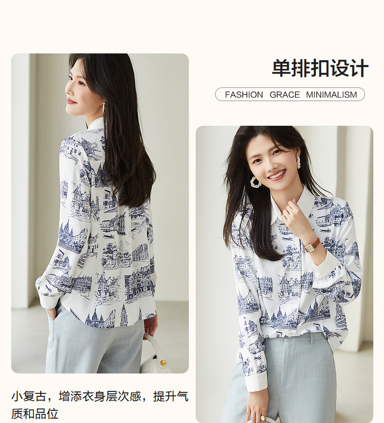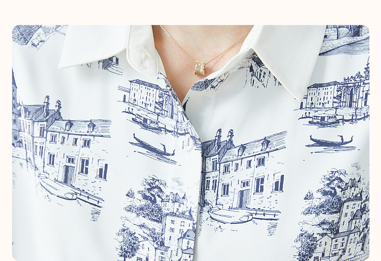 商品名称:【衬衫博物馆】秋翻领雪纺衬衫长袖印花衬衣女装上衣 975297