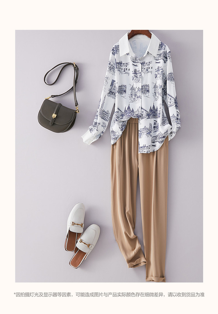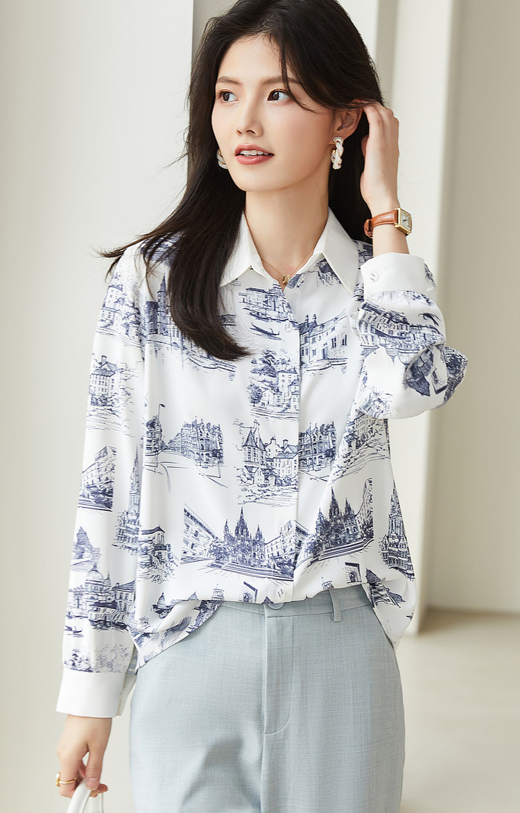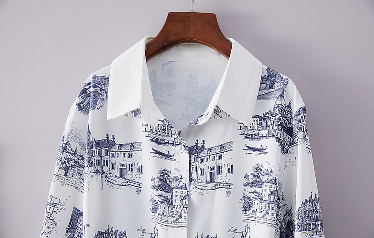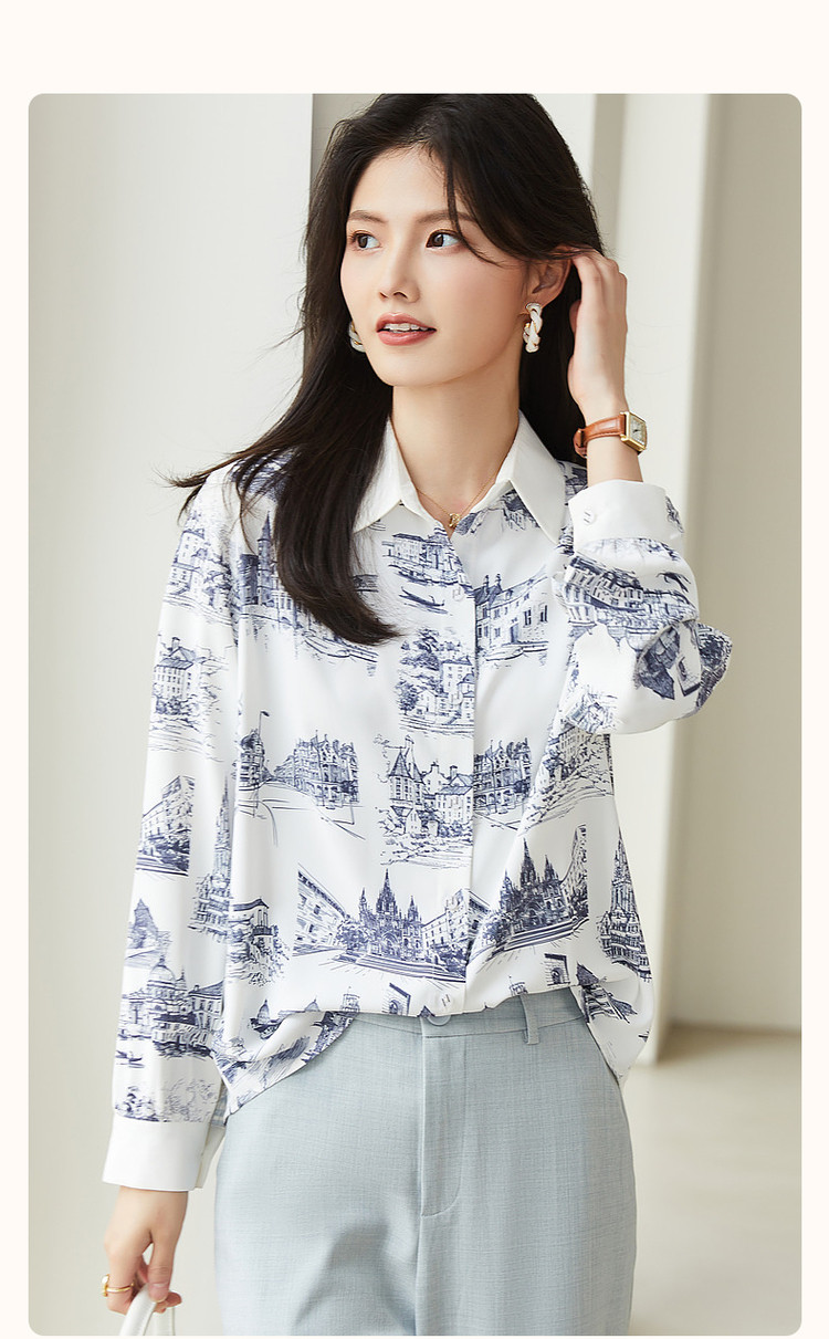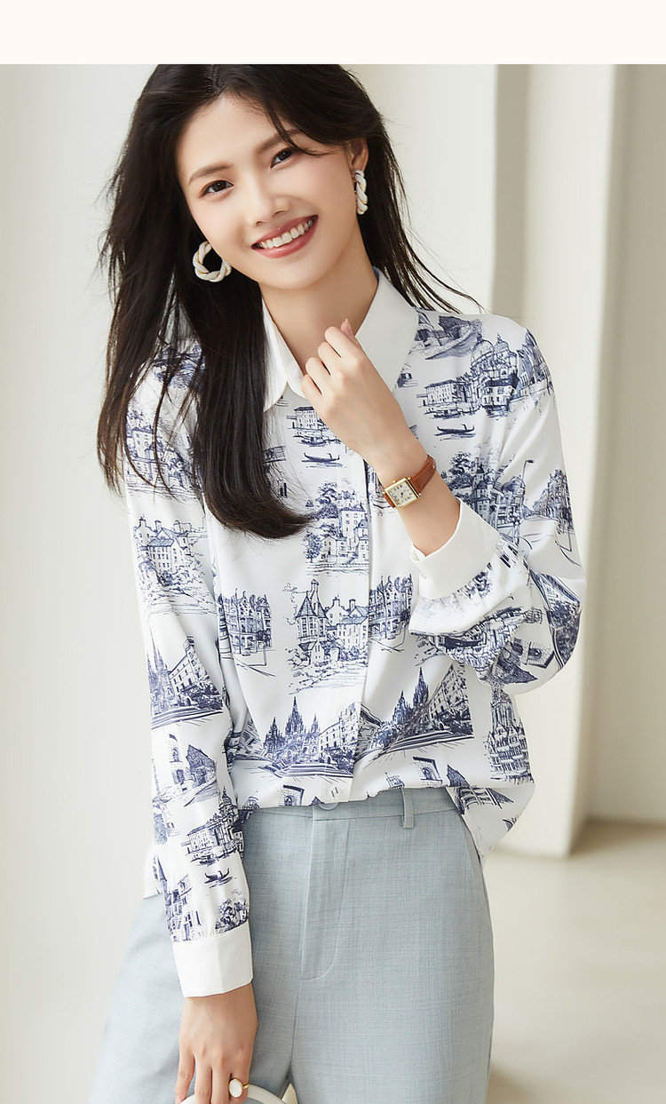 商品名称:【衬衫博物馆】秋翻领雪纺衬衫长袖印花衬衣女装上衣 975297