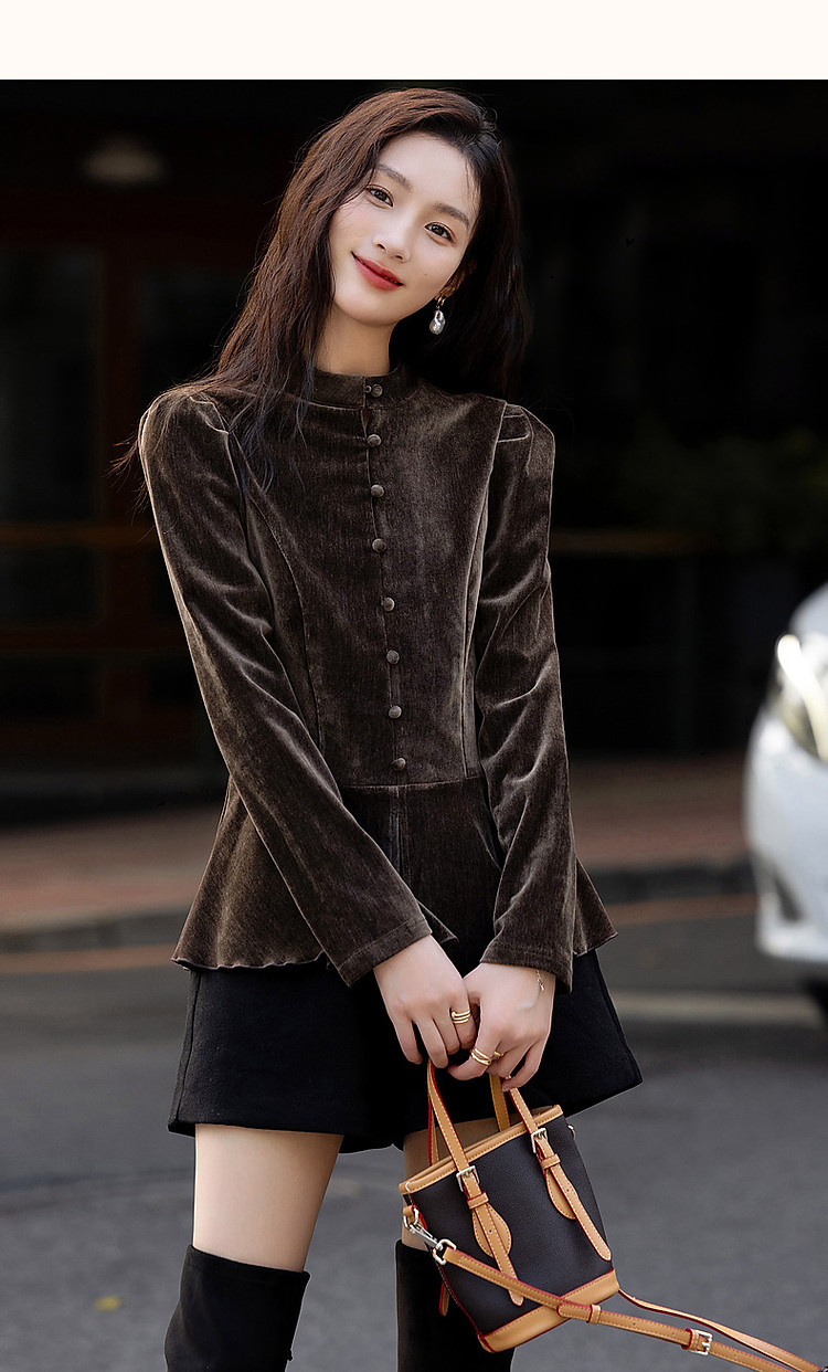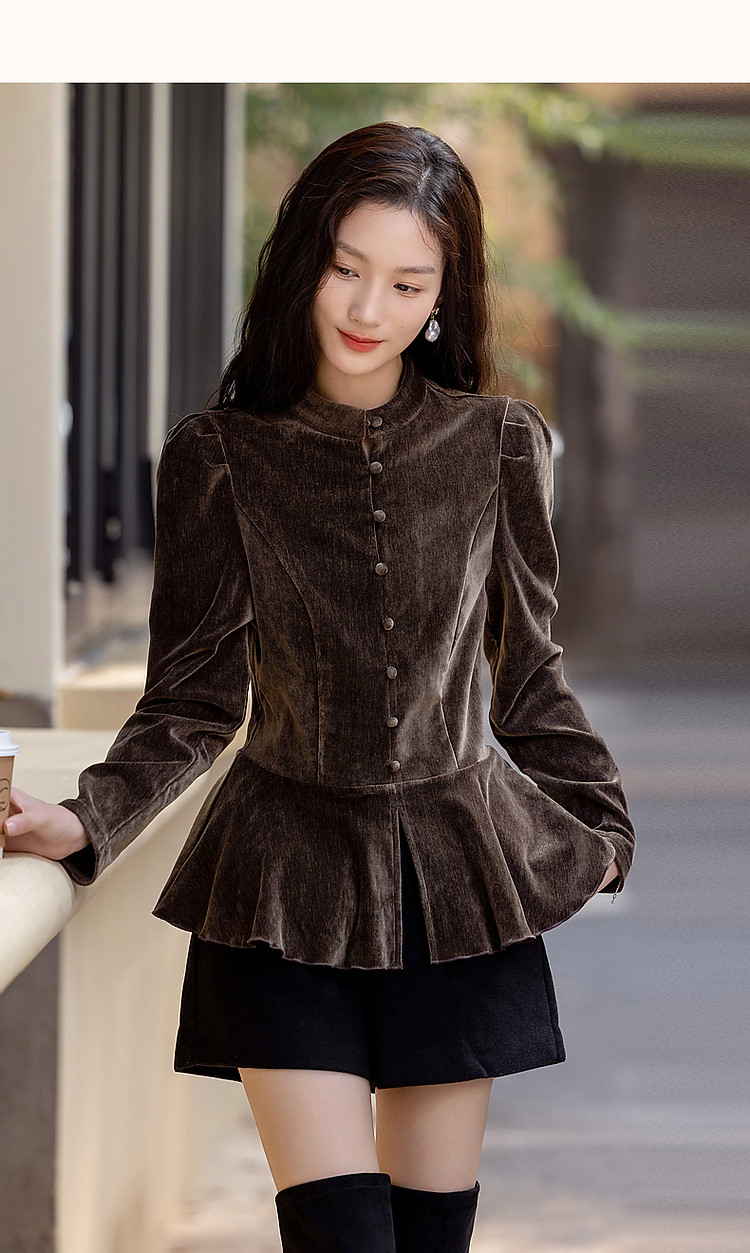 【英式典雅】春秋复古宫廷风小立领泡泡袖衬衫荷叶边衬衣女装上衣 149121