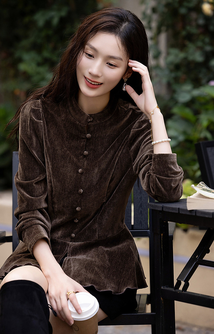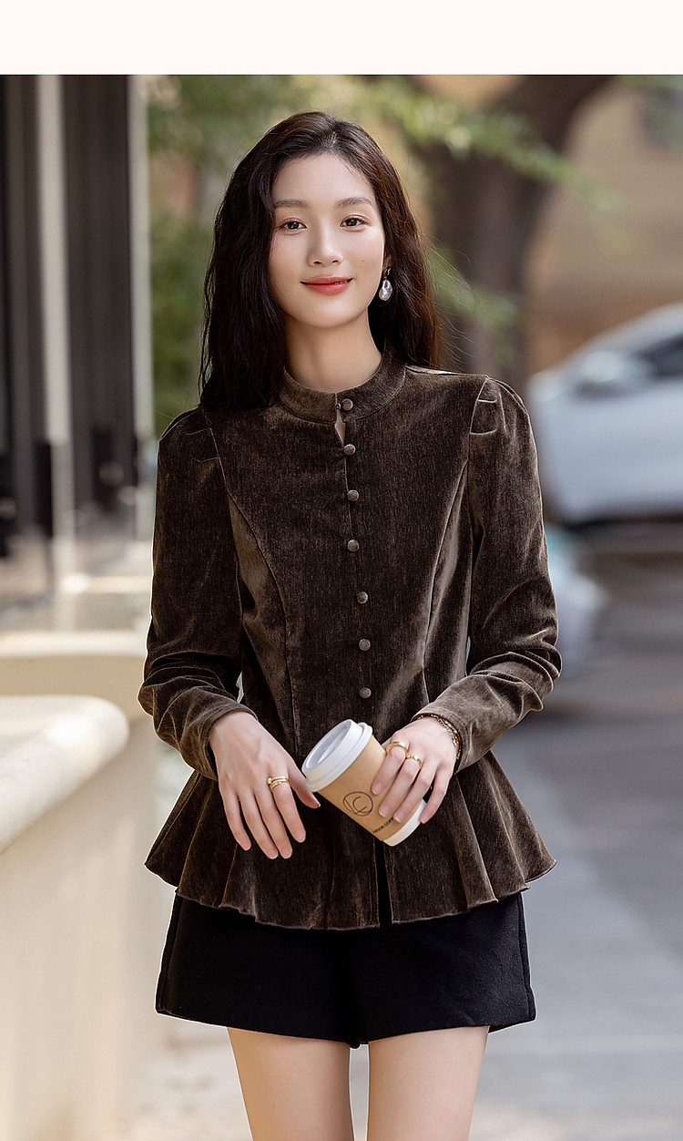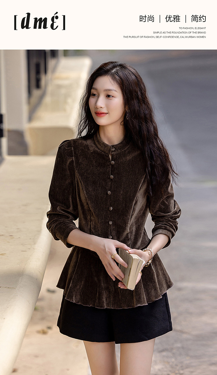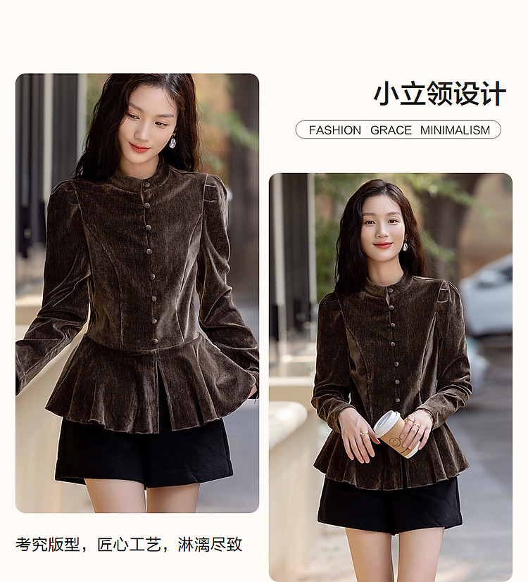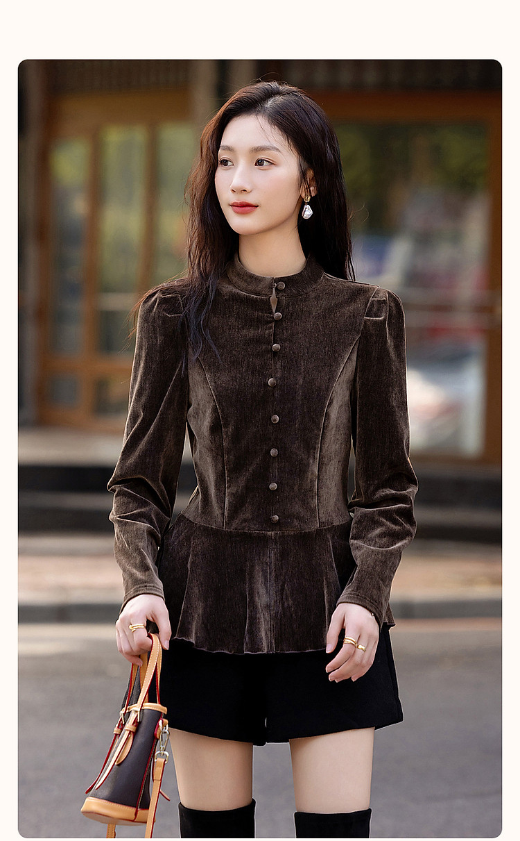 商品名称:【英式典雅】春秋复古宫廷风小立领泡泡袖衬衫荷叶边衬衣女装上衣 149121