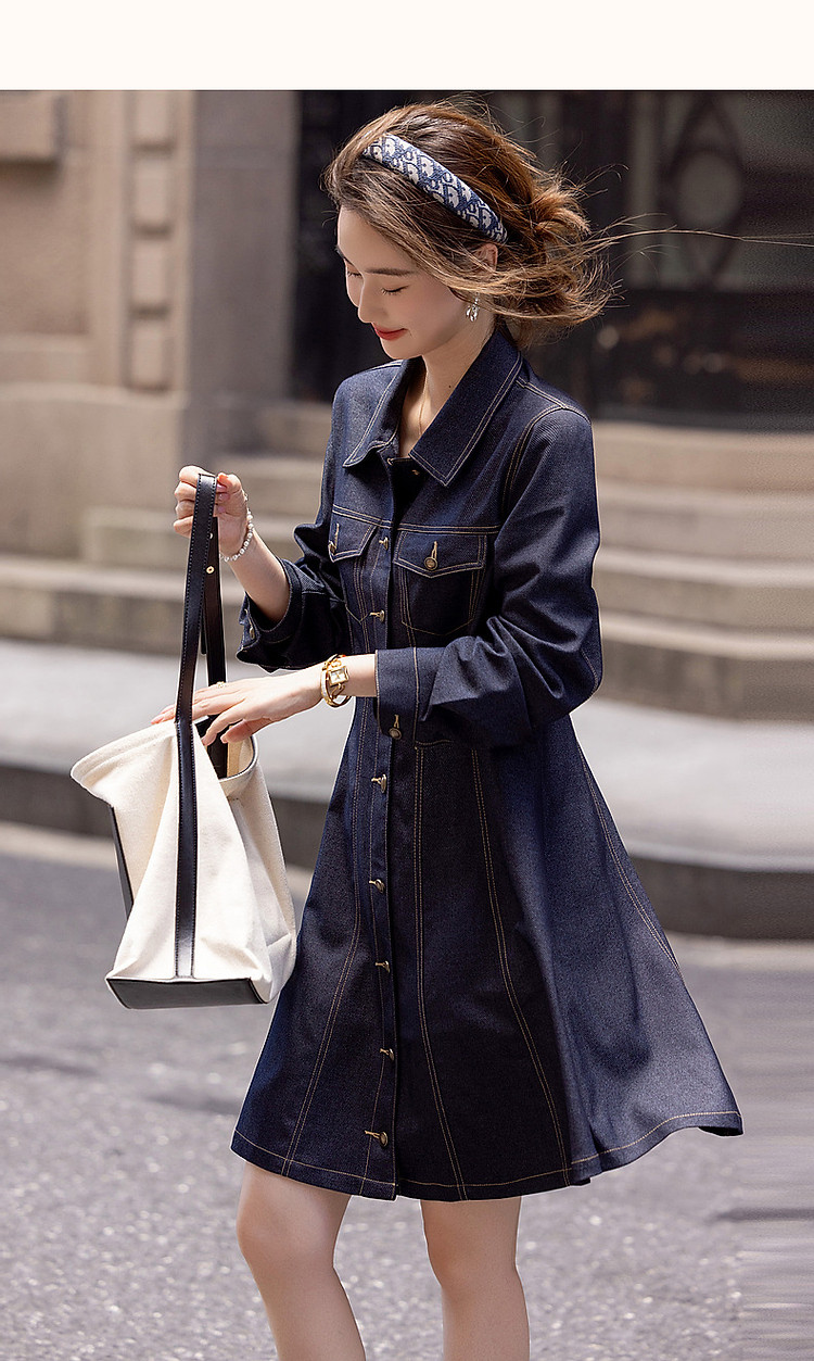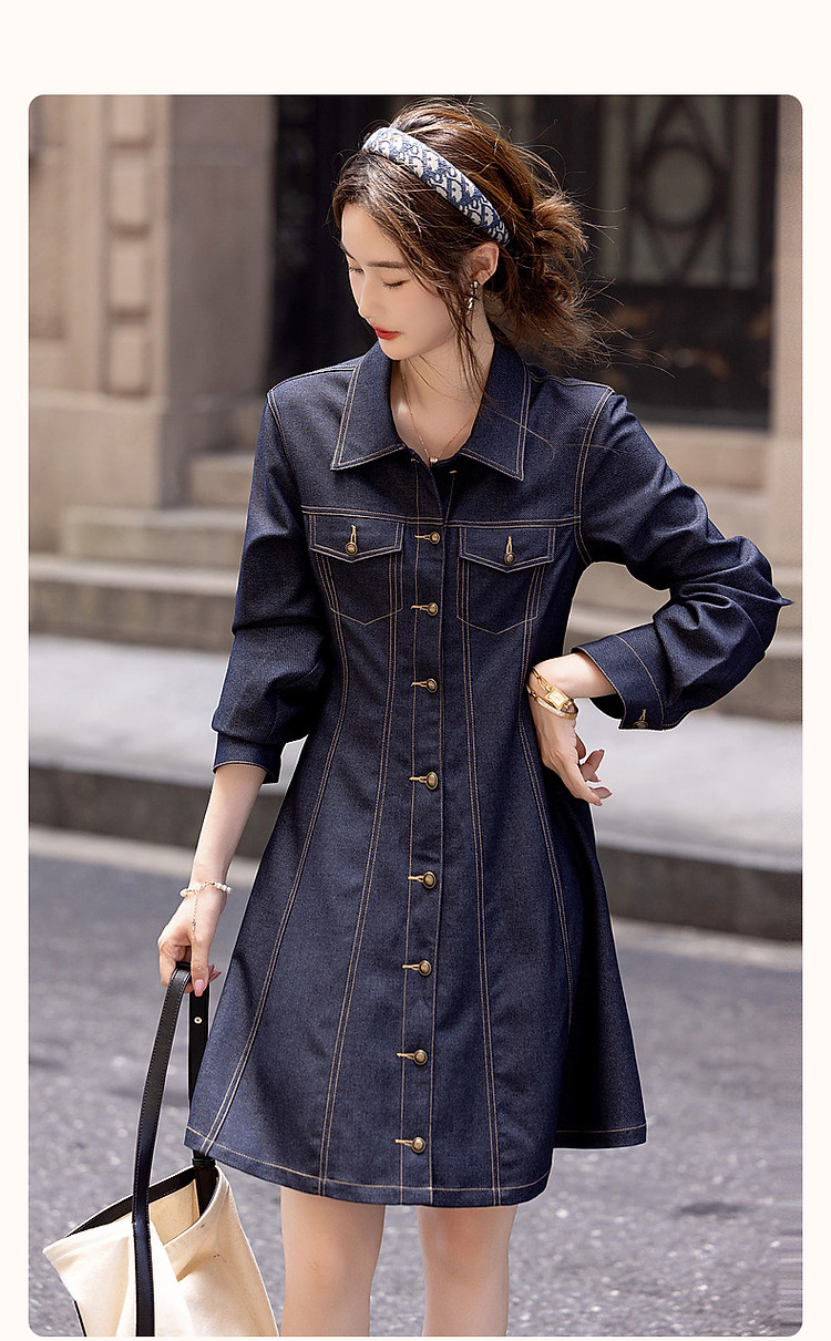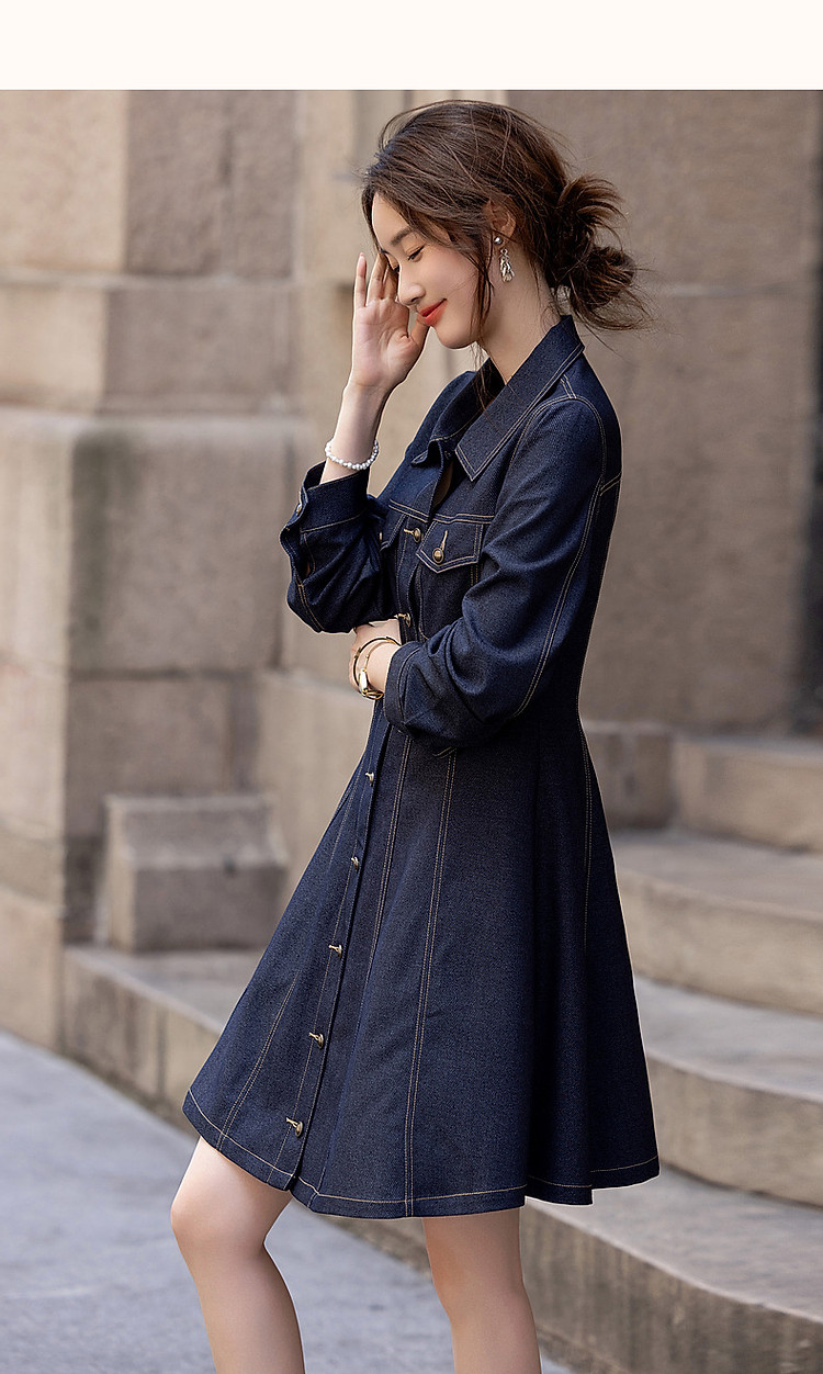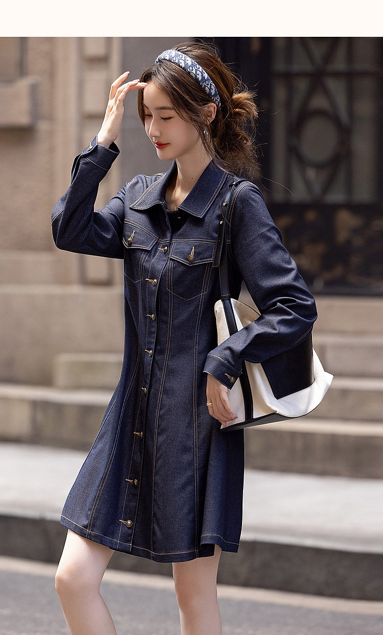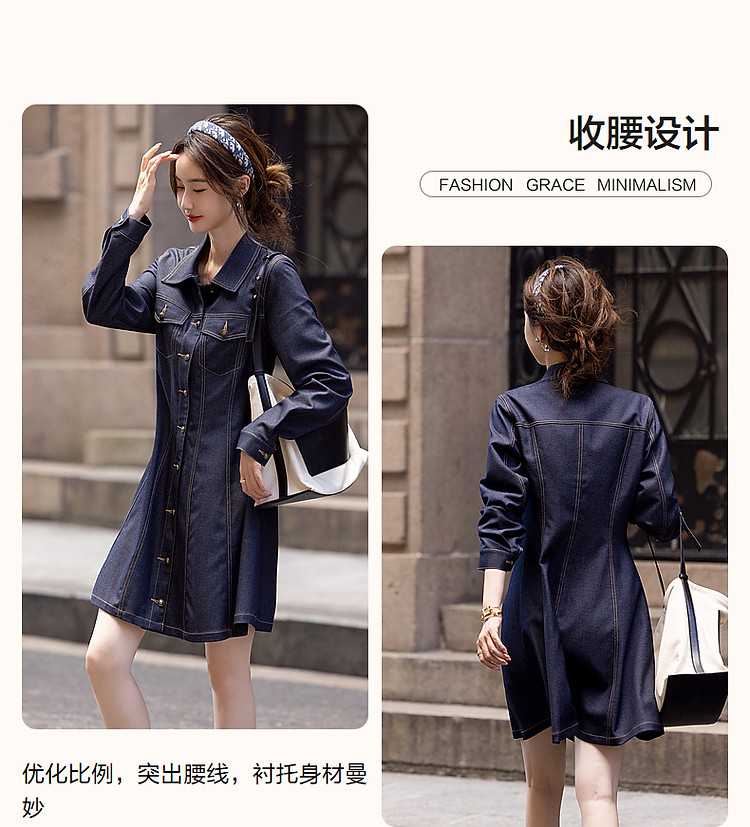 商品名称:【种草力拉满】秋季简约飒美复古牛仔修身收腰遮肉女式连衣裙 965057