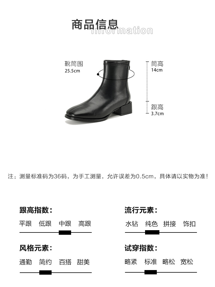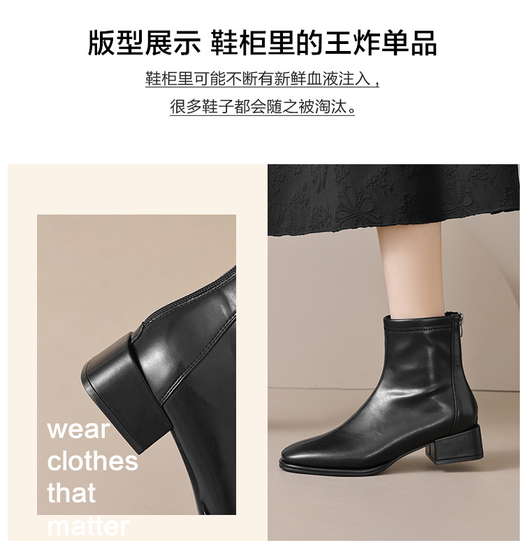 商品名称:秋冬优雅简约奶油高级感气质方头通勤百搭瘦瘦靴女靴 339777