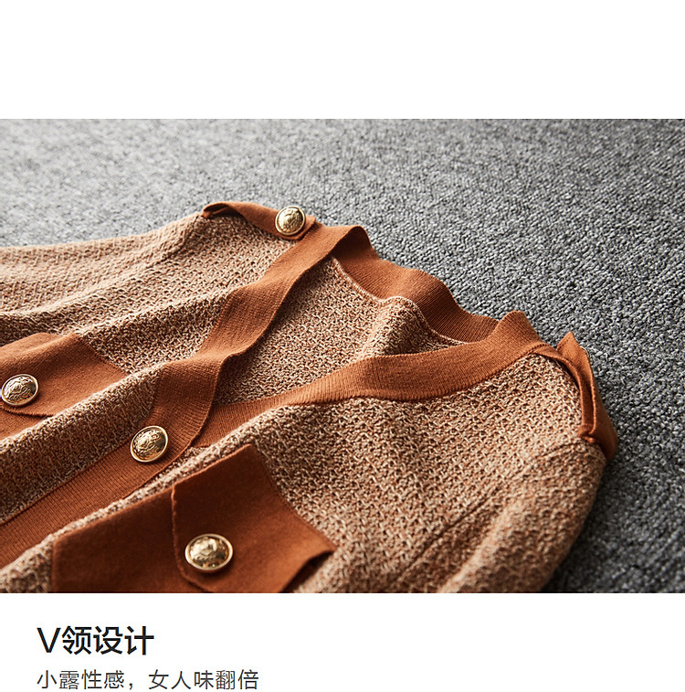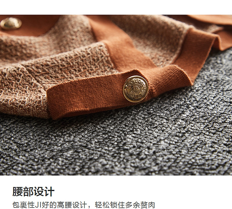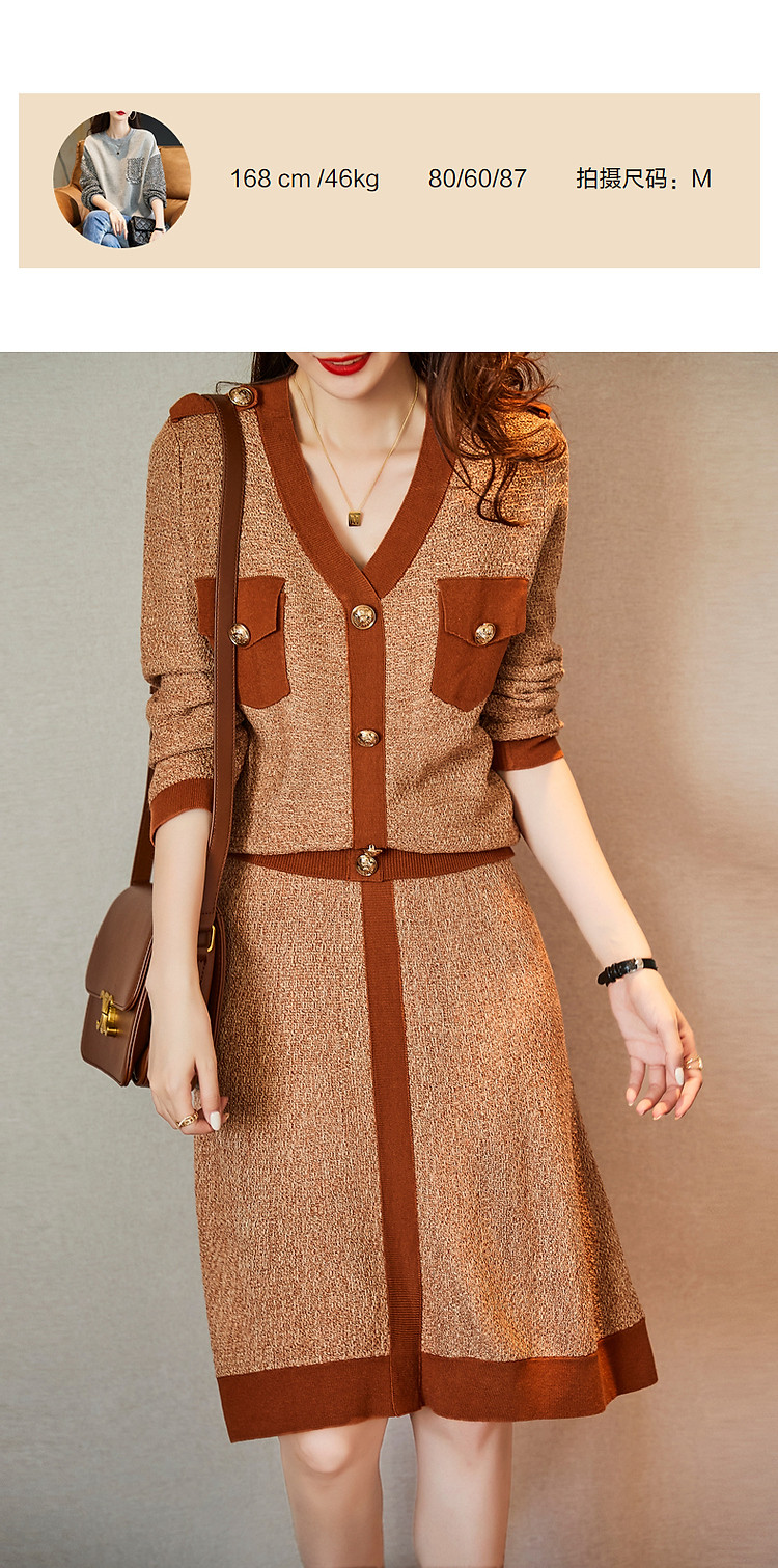 商品名称:【针织套装】春秋新V领上衣浮雕金扣高腰小A包臀半裙套装女时尚 296257
