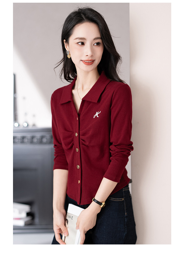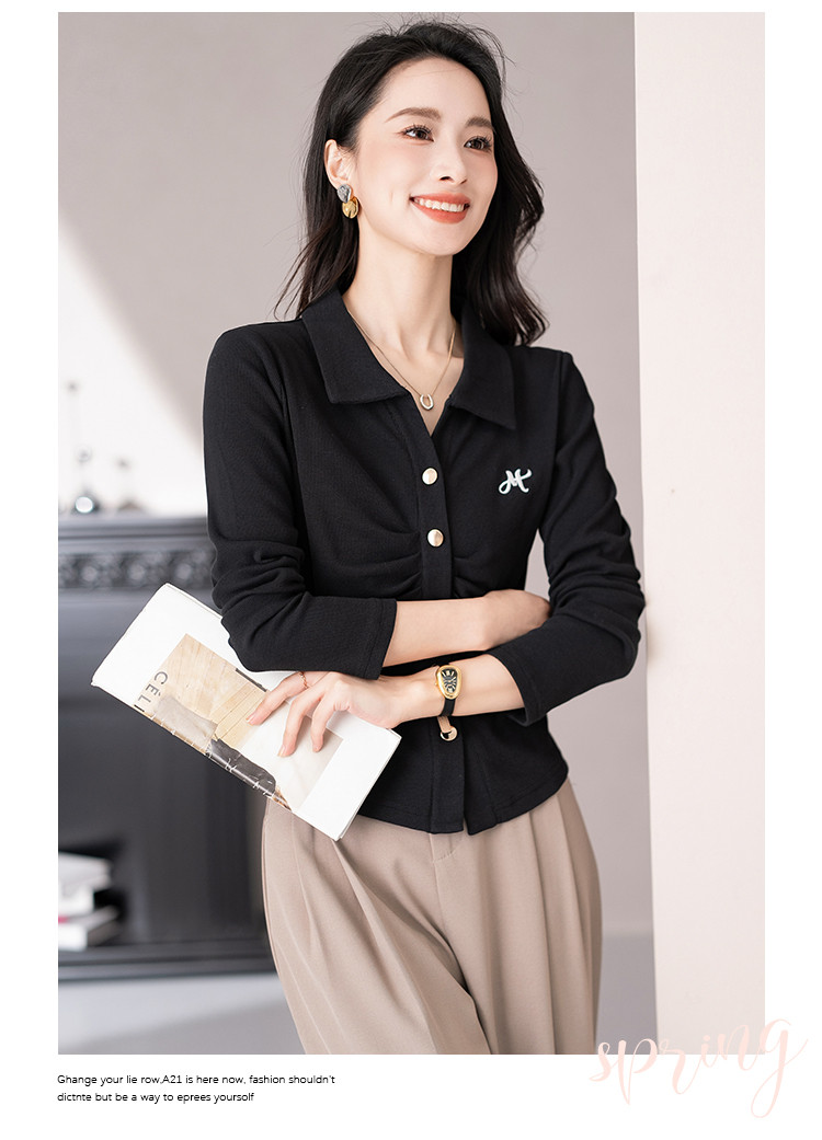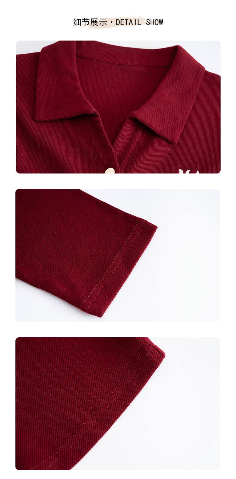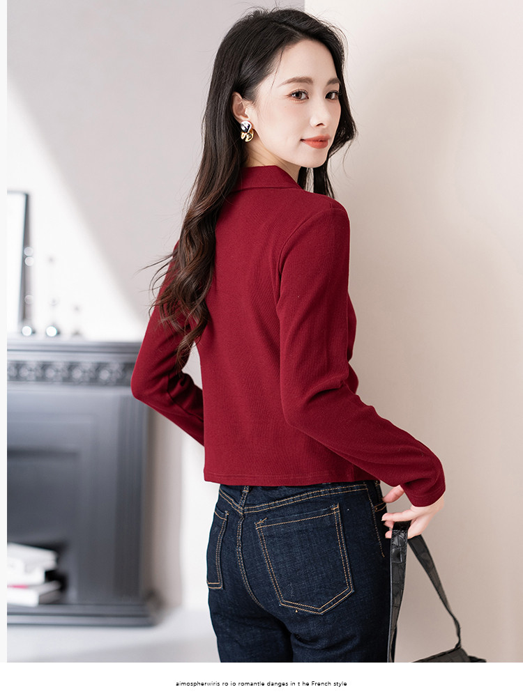 商品名称:开衫单排扣翻领长袖T恤女修身舒适显瘦休闲精美刺绣冬季小外套潮 706433