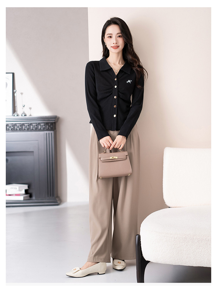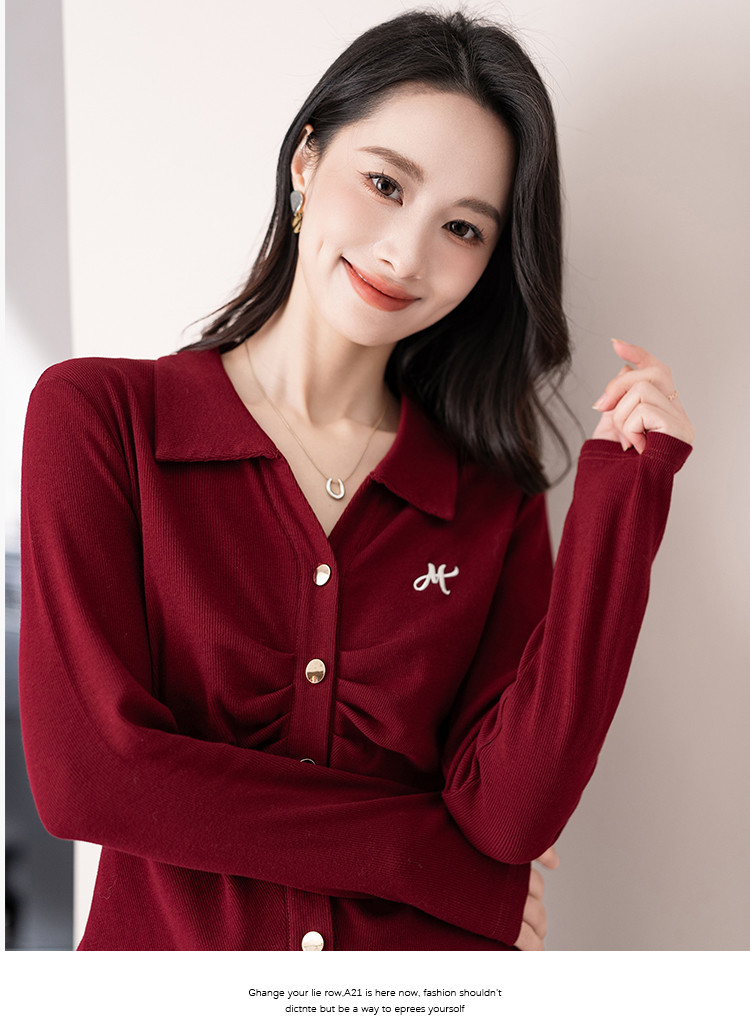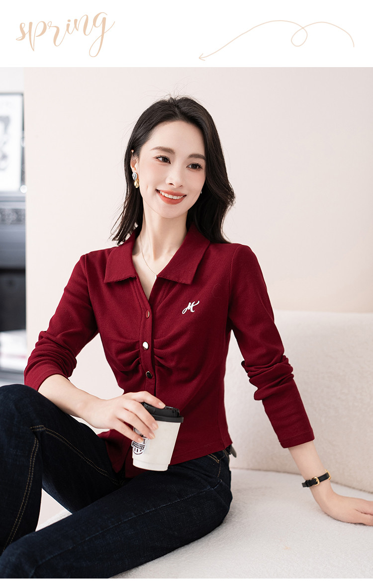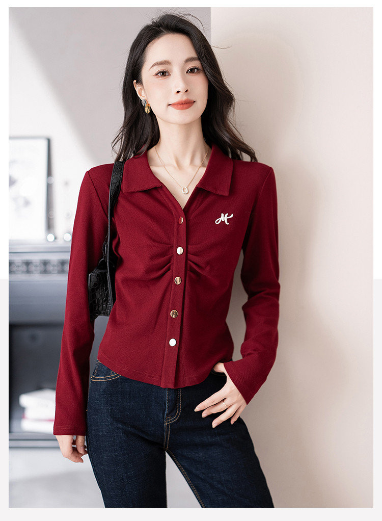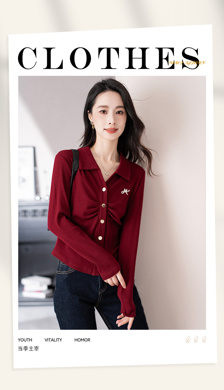 商品名称:开衫单排扣翻领长袖T恤女修身舒适显瘦休闲精美刺绣冬季小外套潮 706433