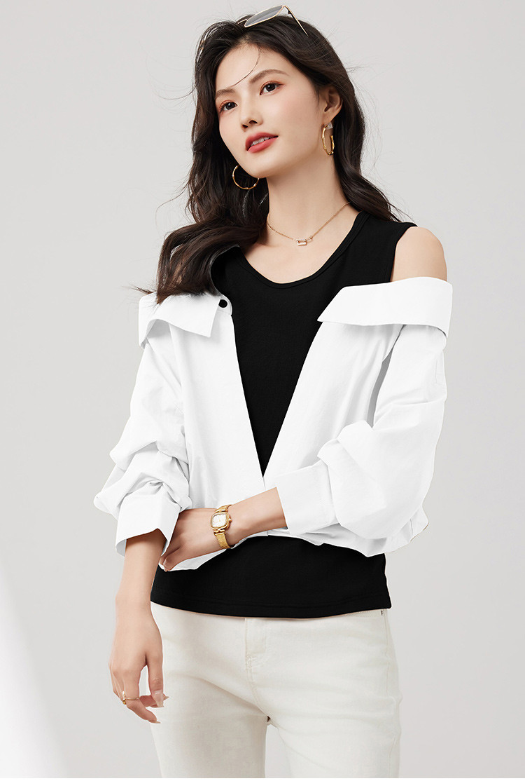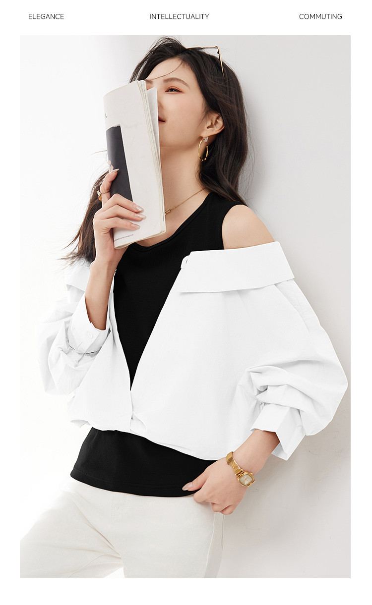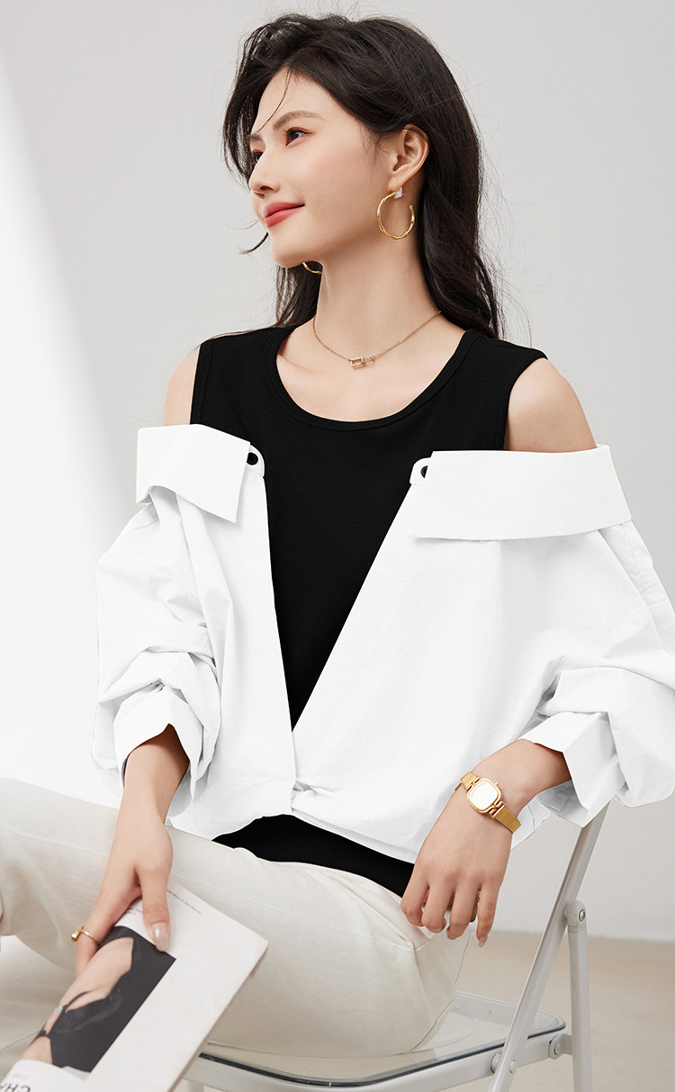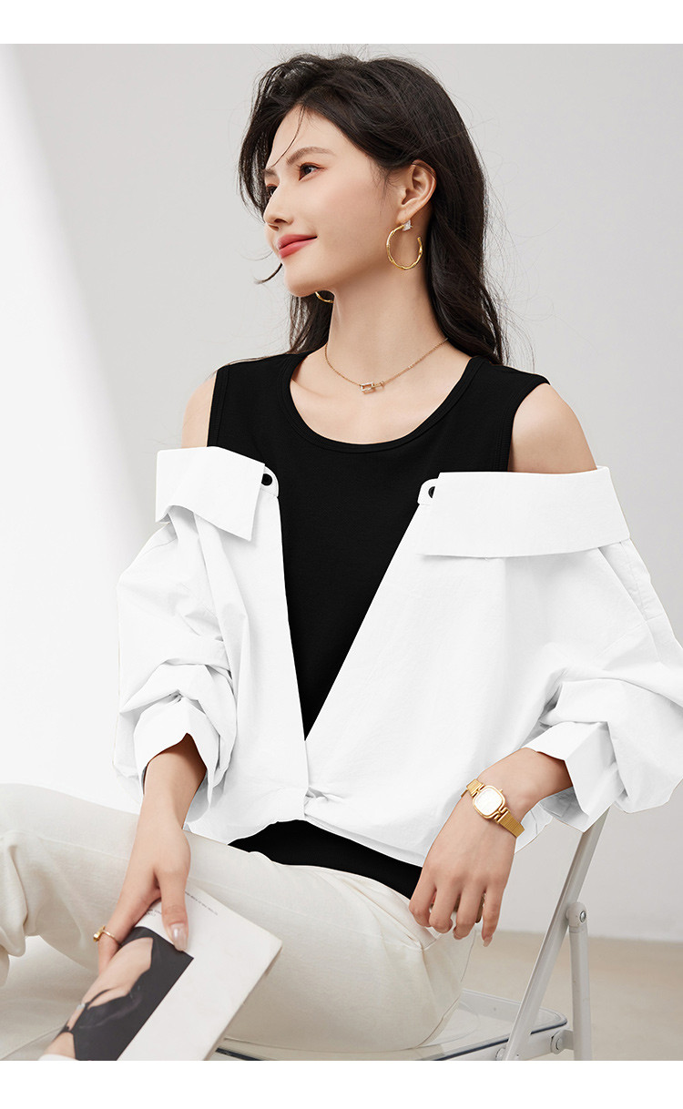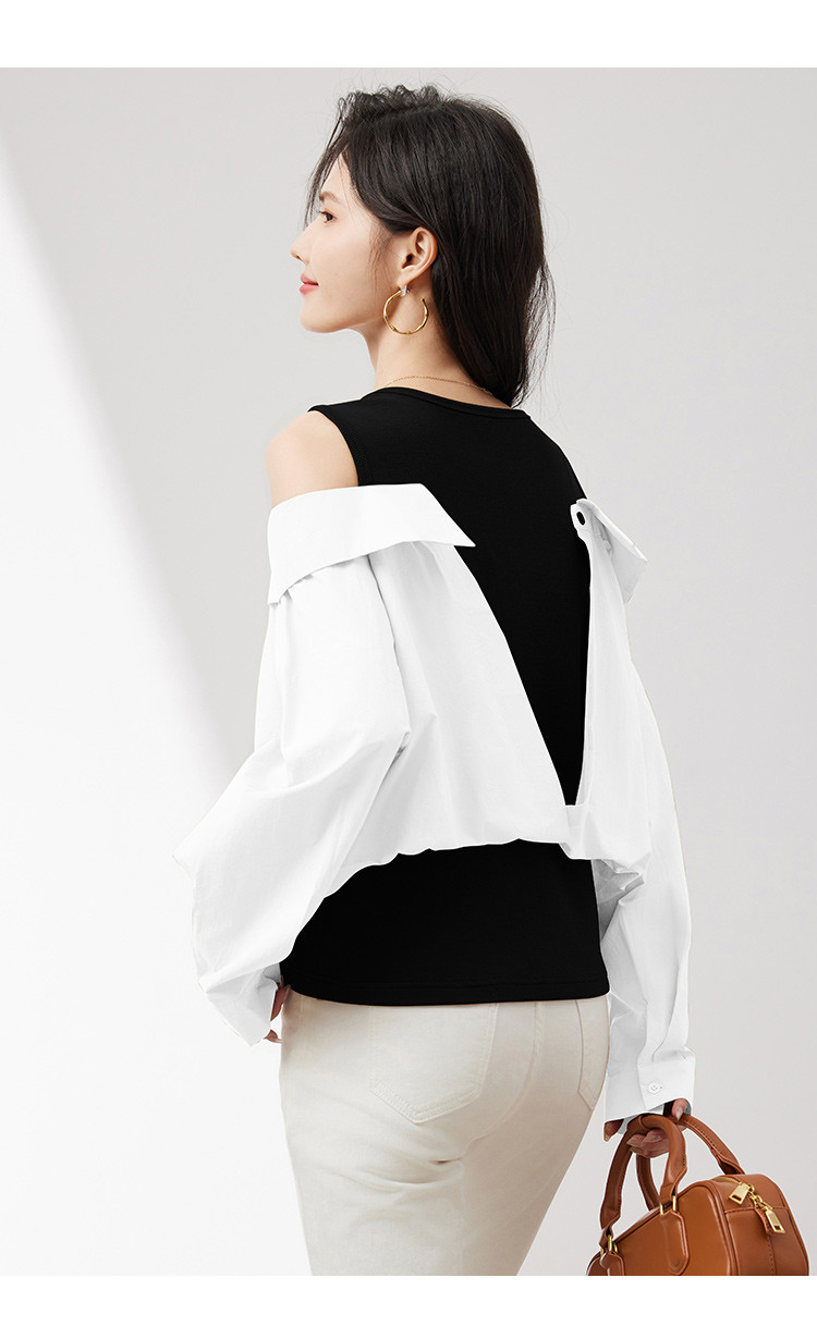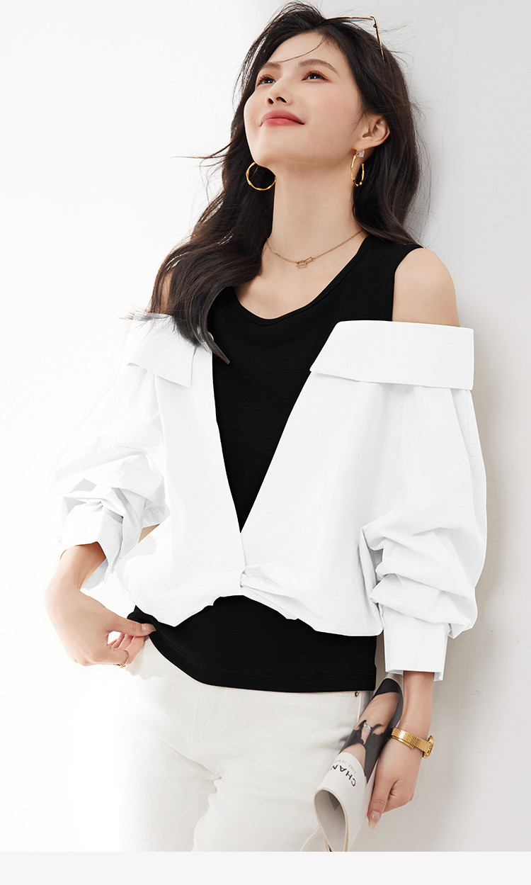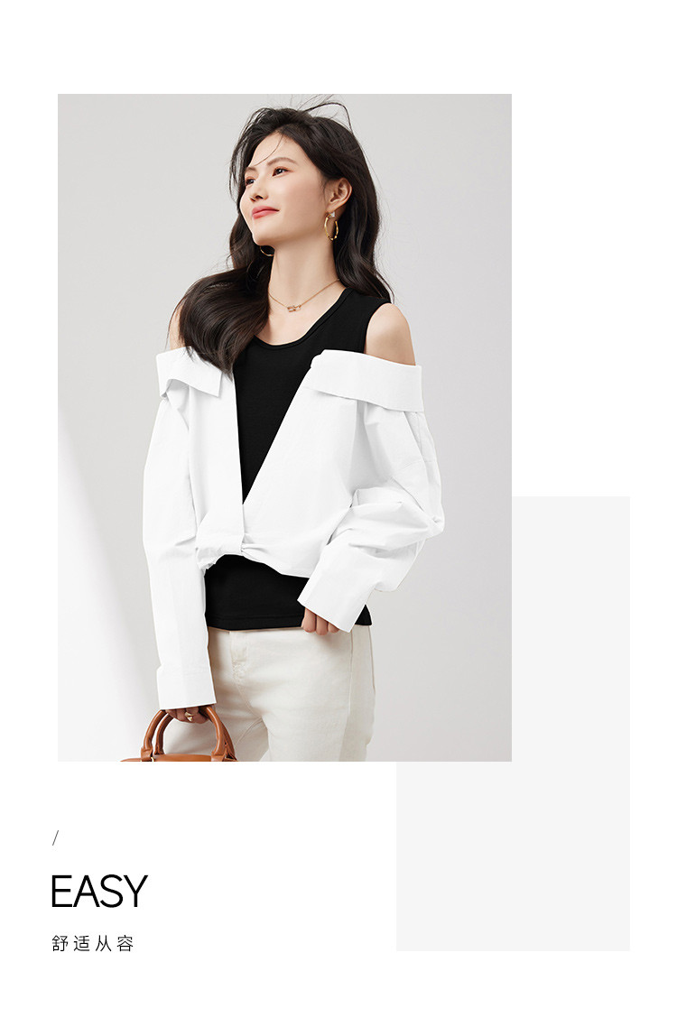 商品名称:【假两件露肩气质上衣】25春季新款高级感设计洋气百搭显瘦衬衫 746328