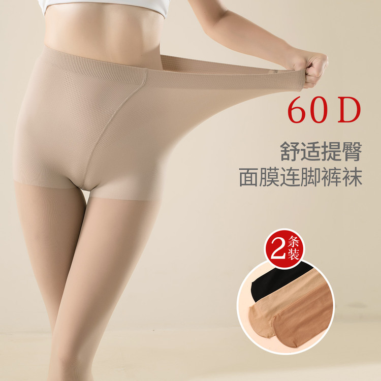 【2条装】面膜丝滑肤感60D高弹收腹提臀显瘦打底连脚裤袜女 797342
