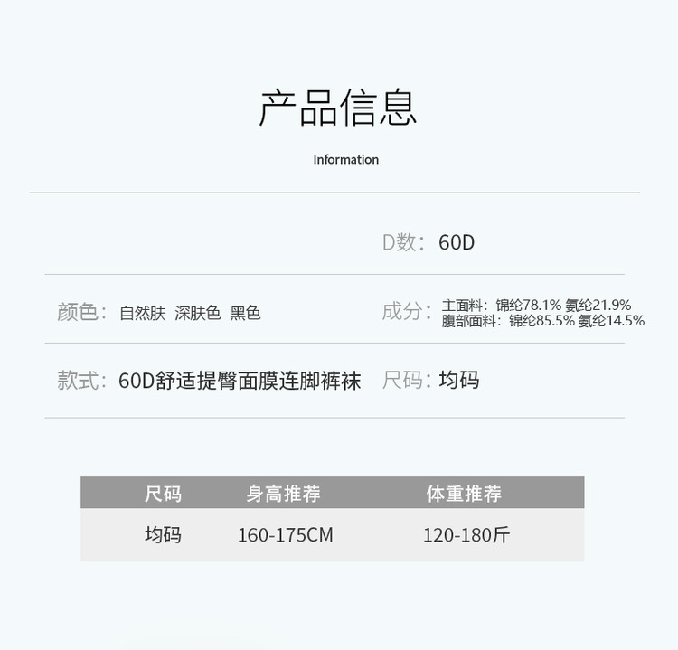 商品名称:【2条装】60D舒适高弹收腹塑形不掉裆面膜打底连脚裤袜丝袜 430878