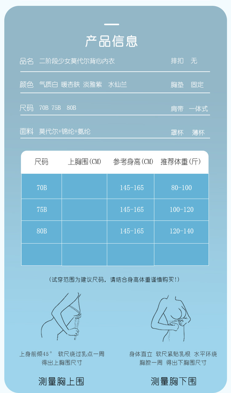 商品名称:【运动防震】初中生青春期背心防凸女童内衣发育期12岁二阶文胸 859230