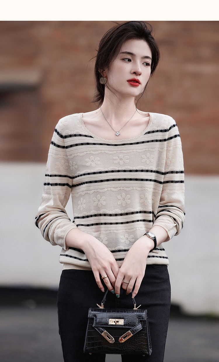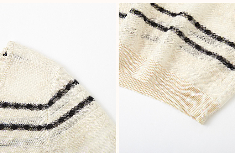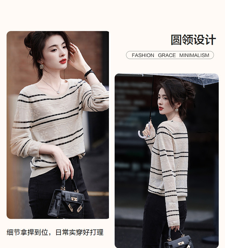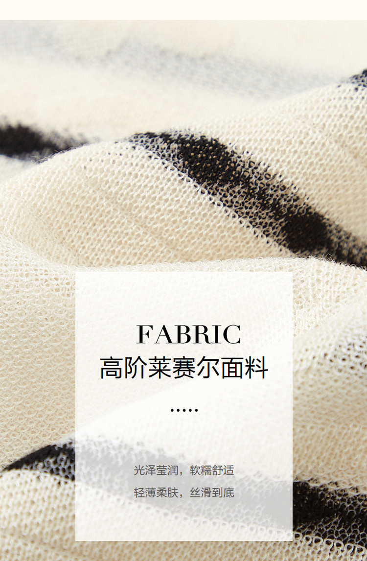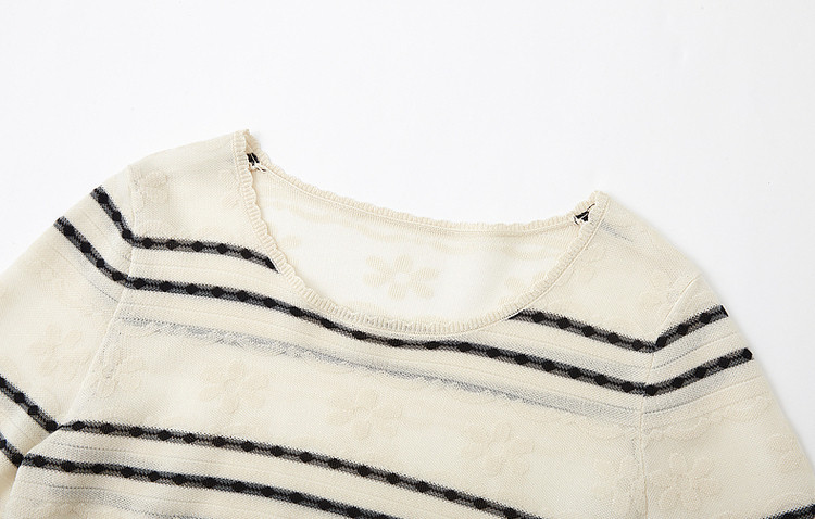 商品名称:【微胖系列】夏空气感莱赛尔线衫花边圆领条纹提花针织衫女上衣 154433