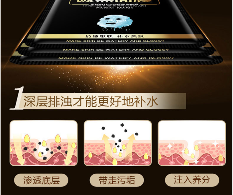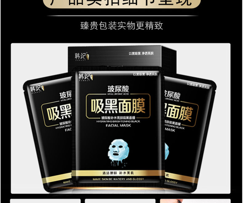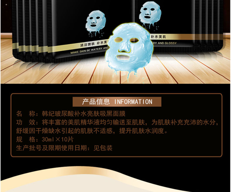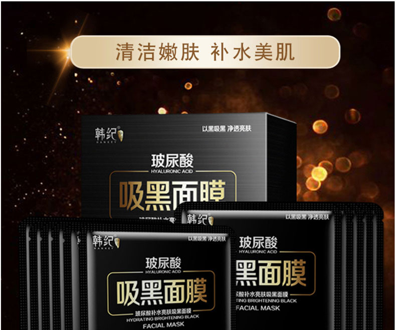 商品名称:Hankey/韩纪 玻尿酸补水亮肤吸黑面膜 10片/盒 嫩滑保湿