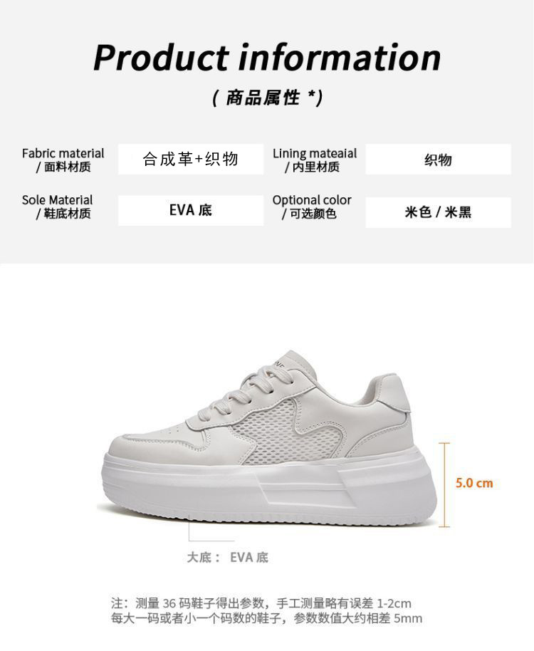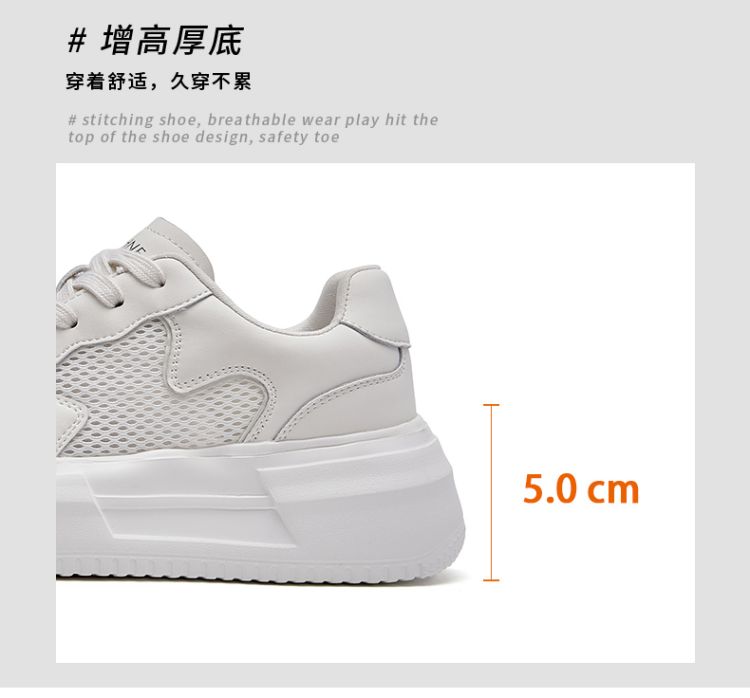 商品名称:春夏厚底增高鞋女板鞋百搭休闲鞋舒适运动鞋透气小白鞋 121431