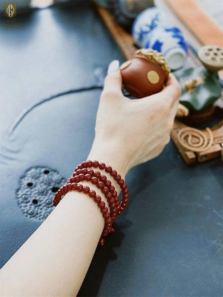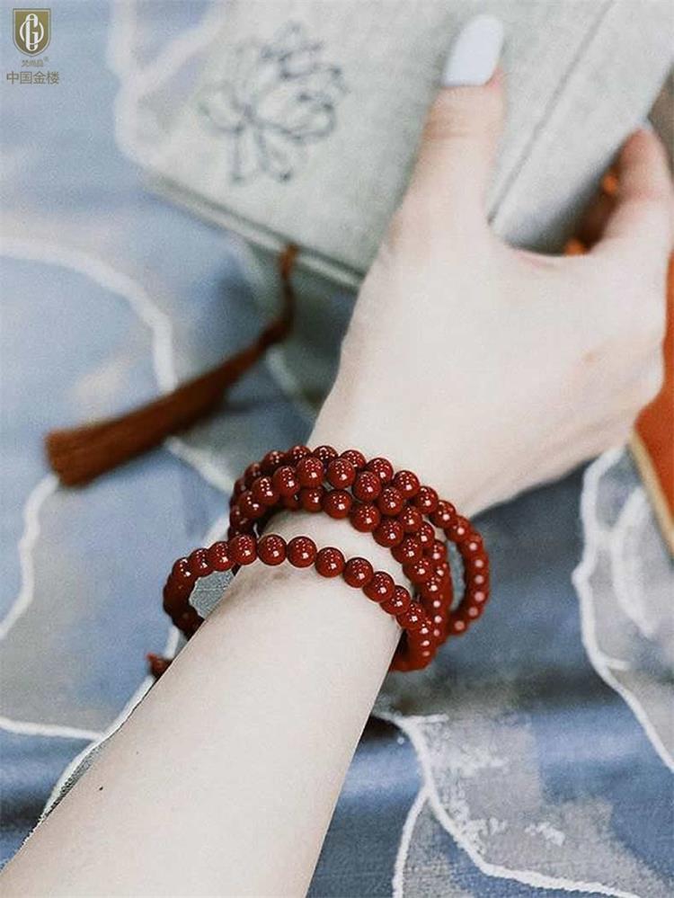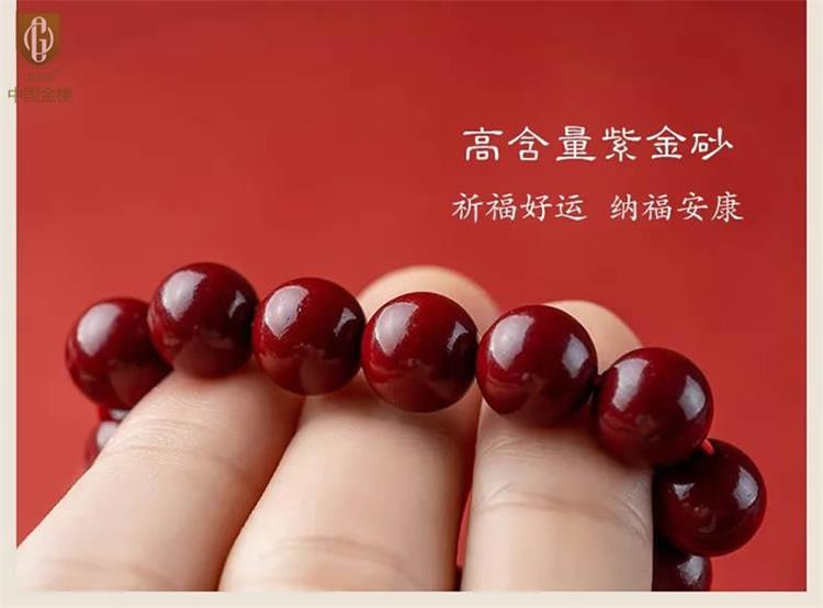 中国金楼梵尚品天然原矿石A级朱砂手链HKZLF01006送礼好物(买一赠一送汉白玉手串)