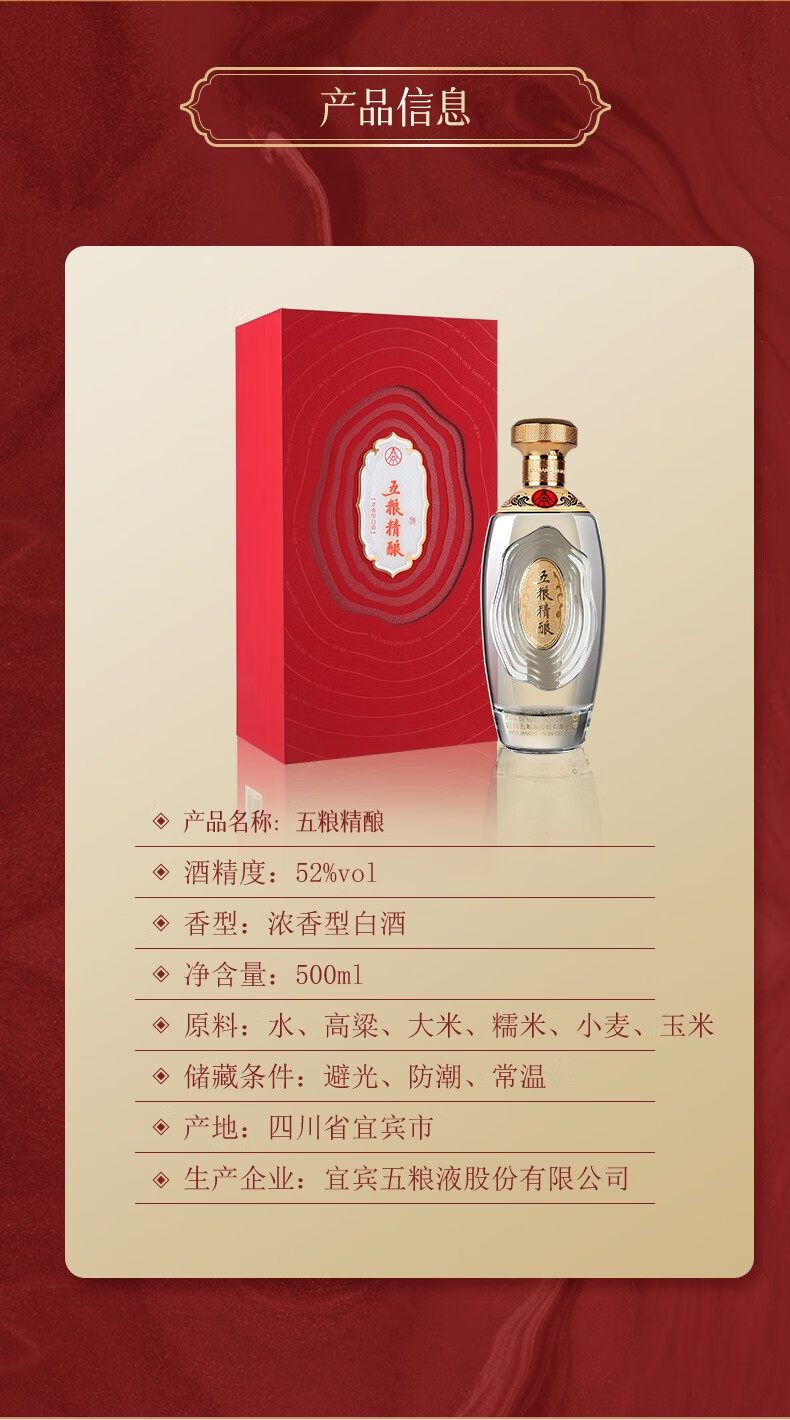 商品名称:【整箱】五粮液股份公司 52度白酒浓香型婚宴婚庆宴席商务礼盒白酒 五粮精酿礼鉴珍酿500ml*6瓶