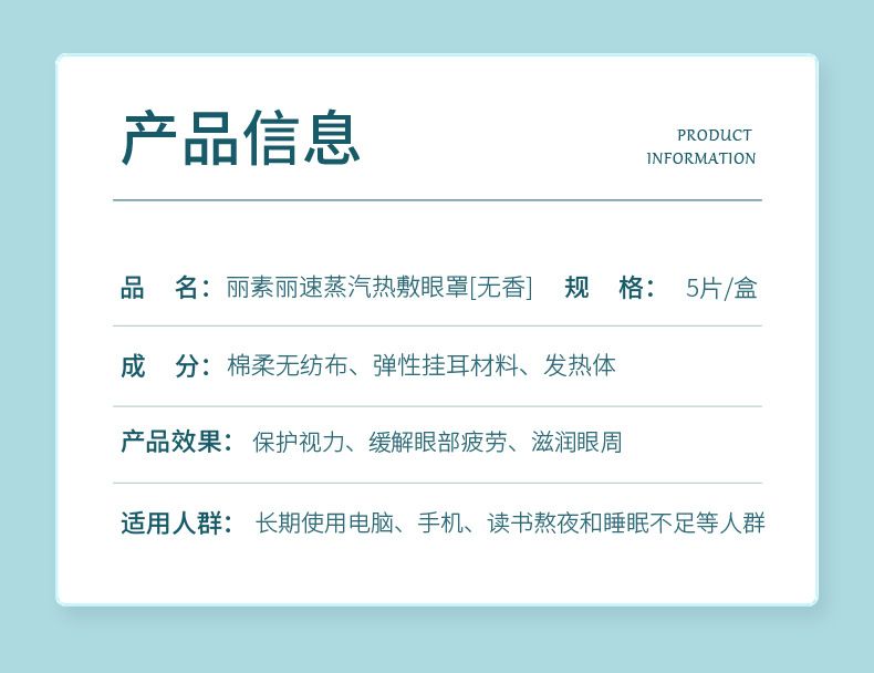 商品名称:LESULESO/丽素丽速黄金眼膜蒸汽眼罩 5片/盒