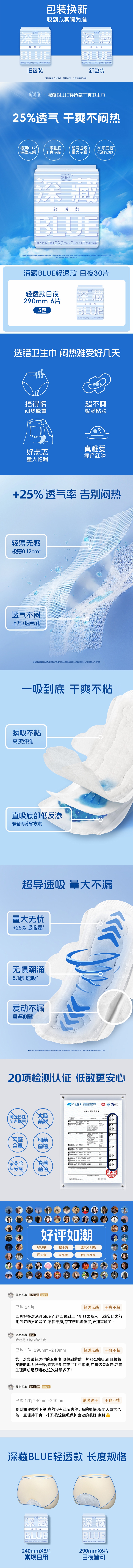 商品名称:她研社(Herlab ) 深藏blue轻透款卫生巾 日用/夜用290mm*6片*5包