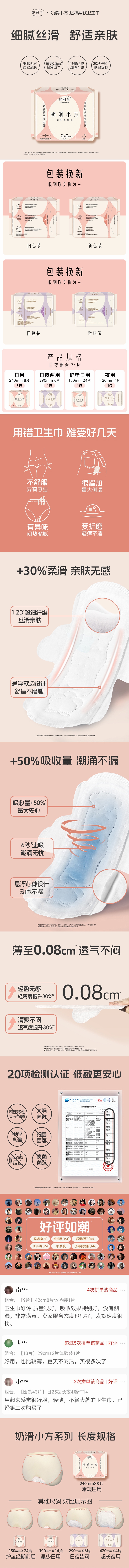商品名称:她研社(Herlab ) 奶滑小方棉柔卫生巾 日夜组合74片套装