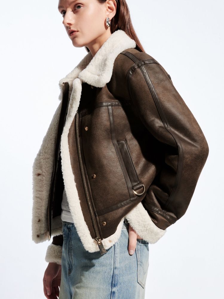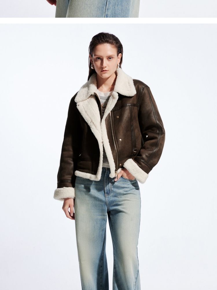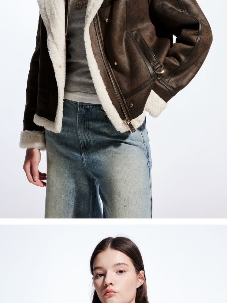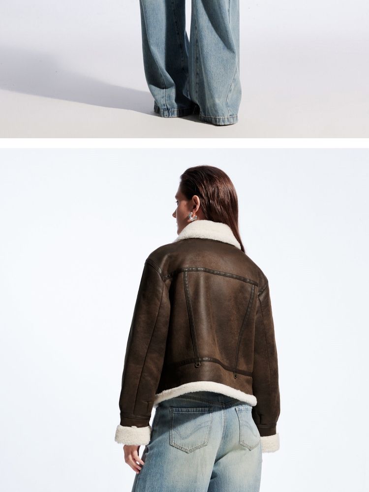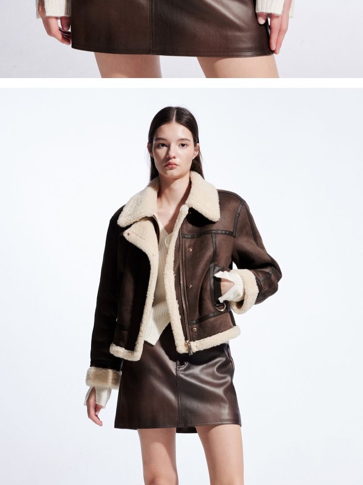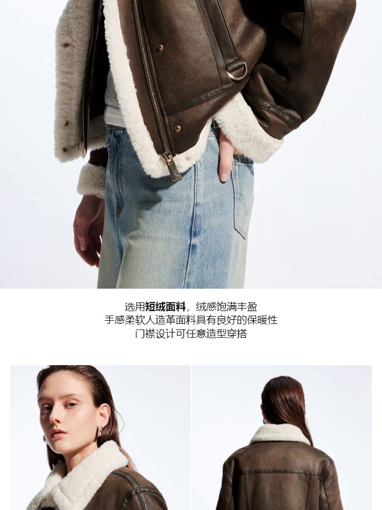 商品名称:【双层门襟】春季时尚翻领落肩PU短款夹克外套女 210522