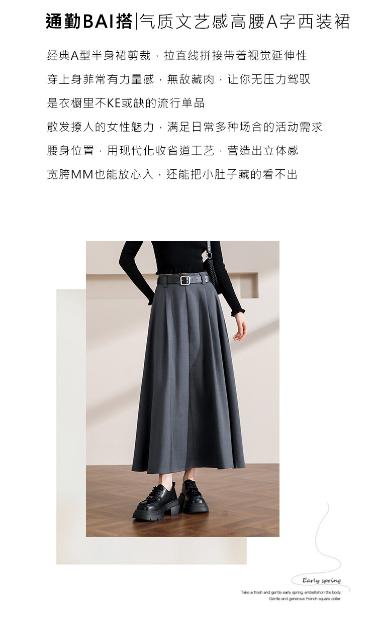 商品名称:【超大裙摆】美拉德色系 重工拼接设计伞裙JK长裙女 827585