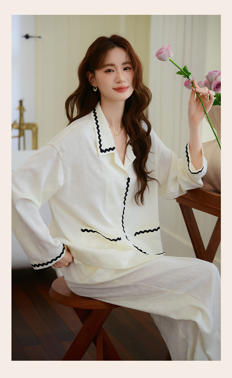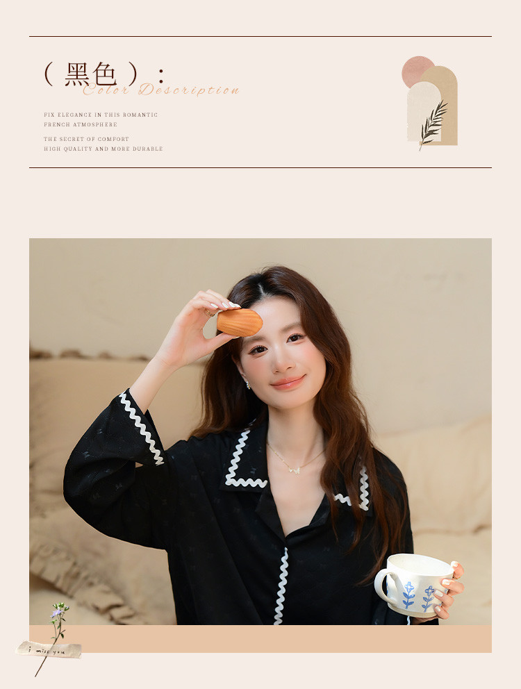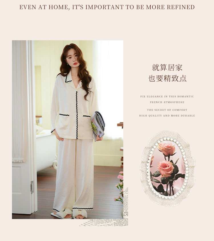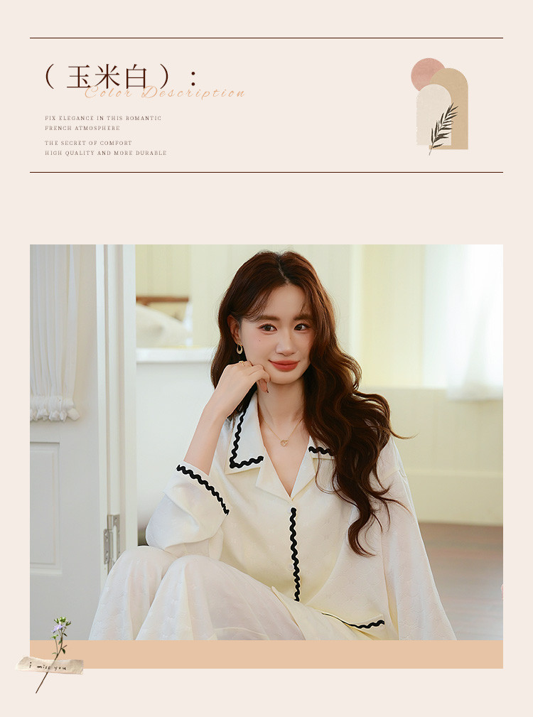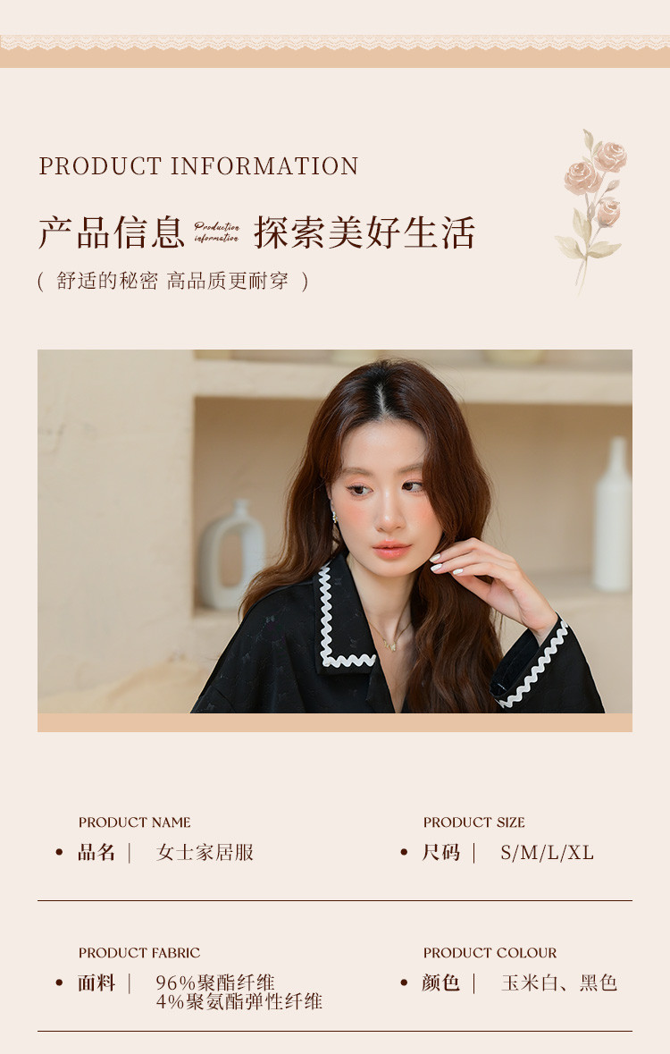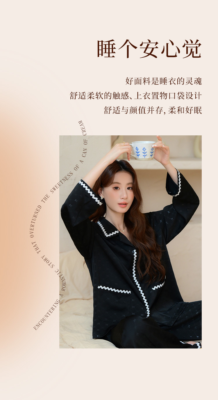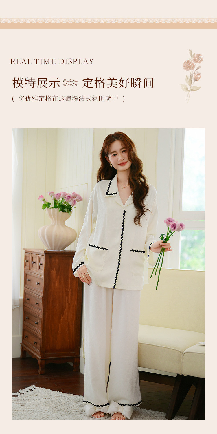 商品名称:【优雅小香风】春秋款开衫长袖睡衣女士高级感家居服套装可外穿 942859