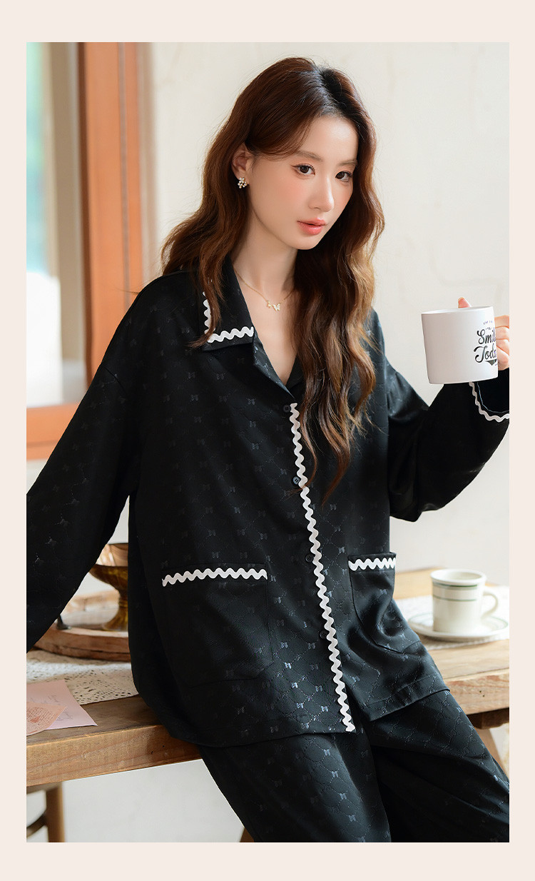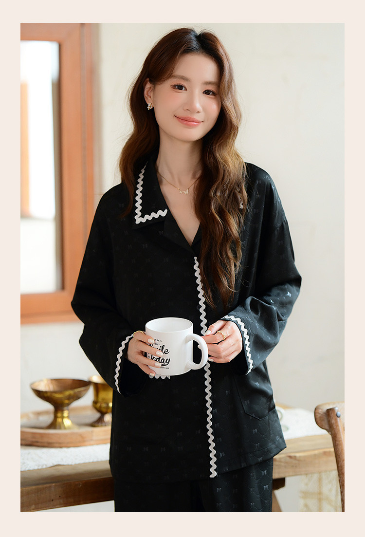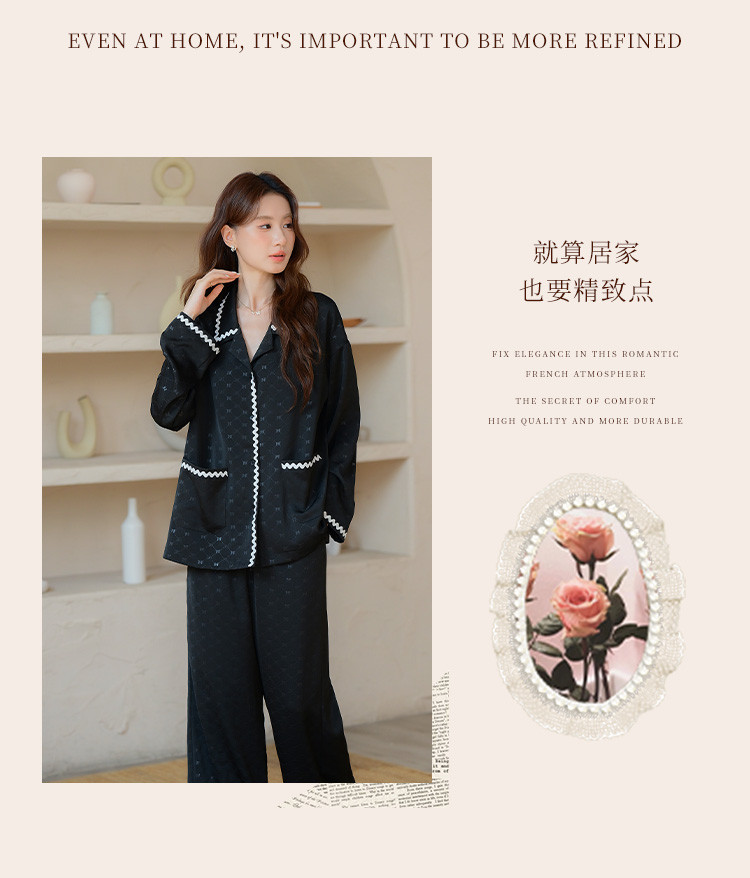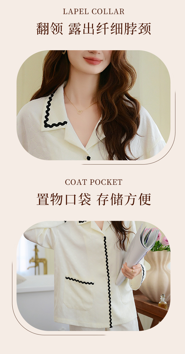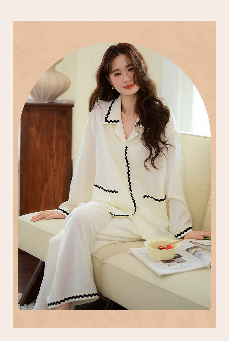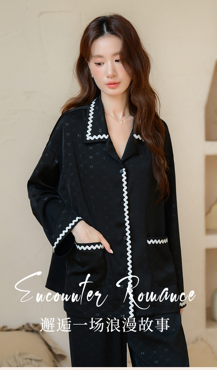 商品名称:【优雅小香风】春秋款开衫长袖睡衣女士高级感家居服套装可外穿 942859