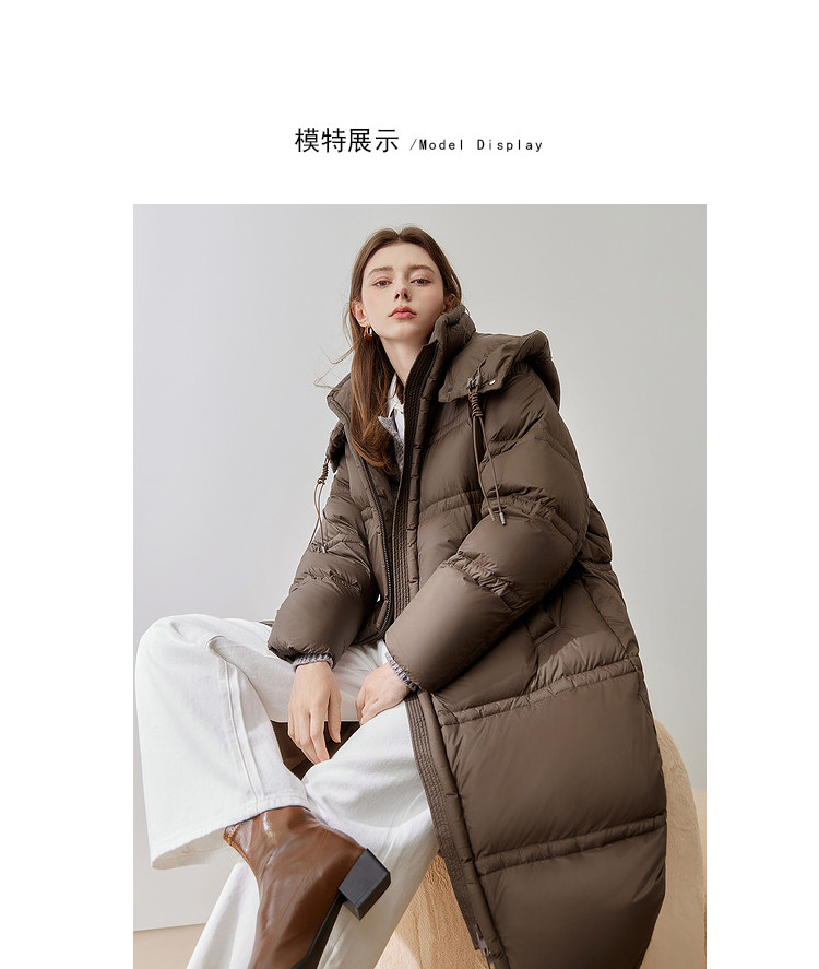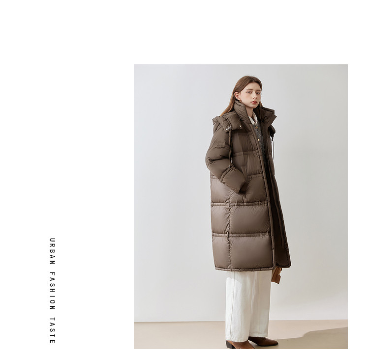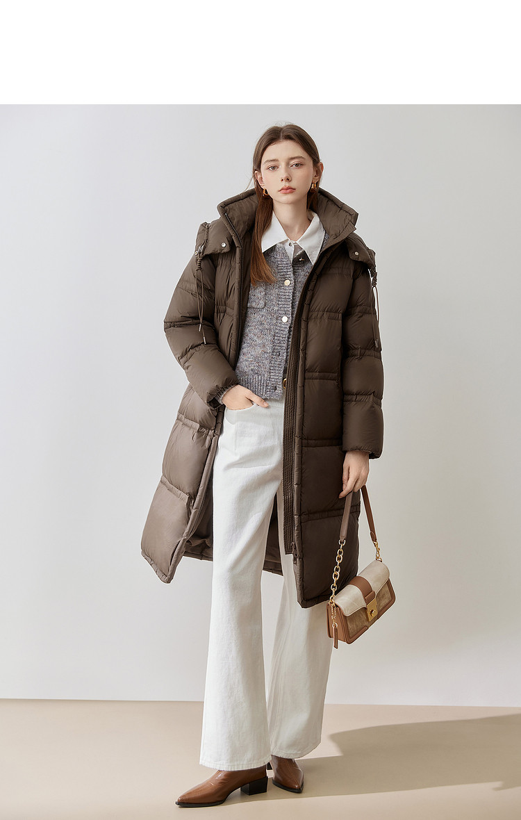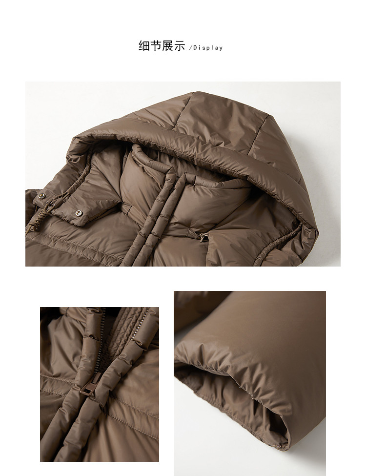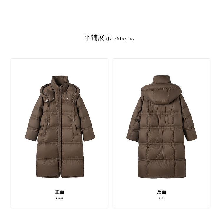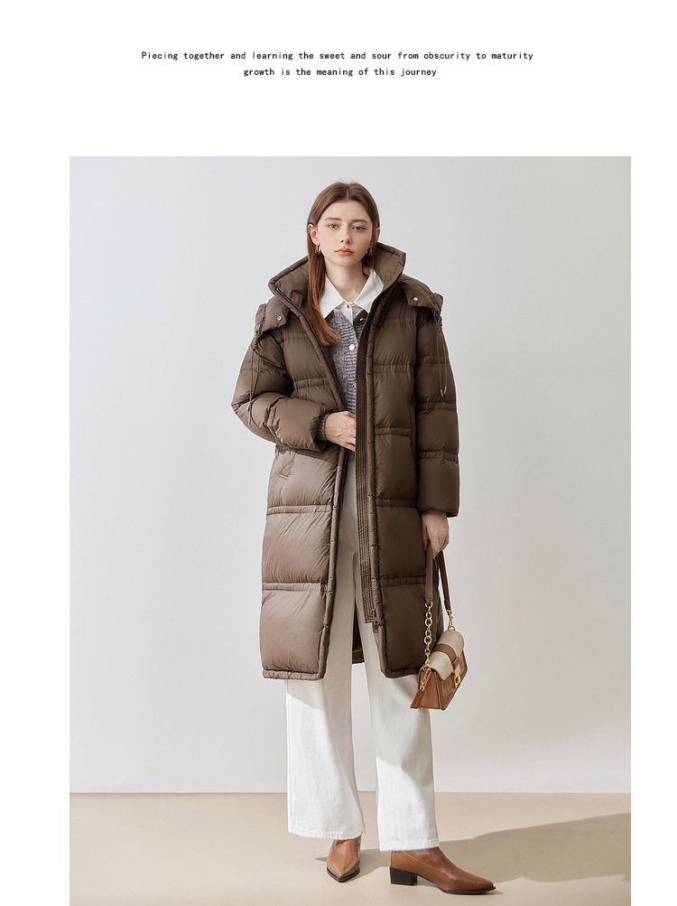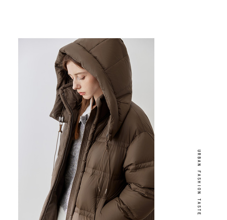 商品名称:【90白鸭绒】2024冬季美拉德中长款宽松连帽羽绒服保暖外套 789908