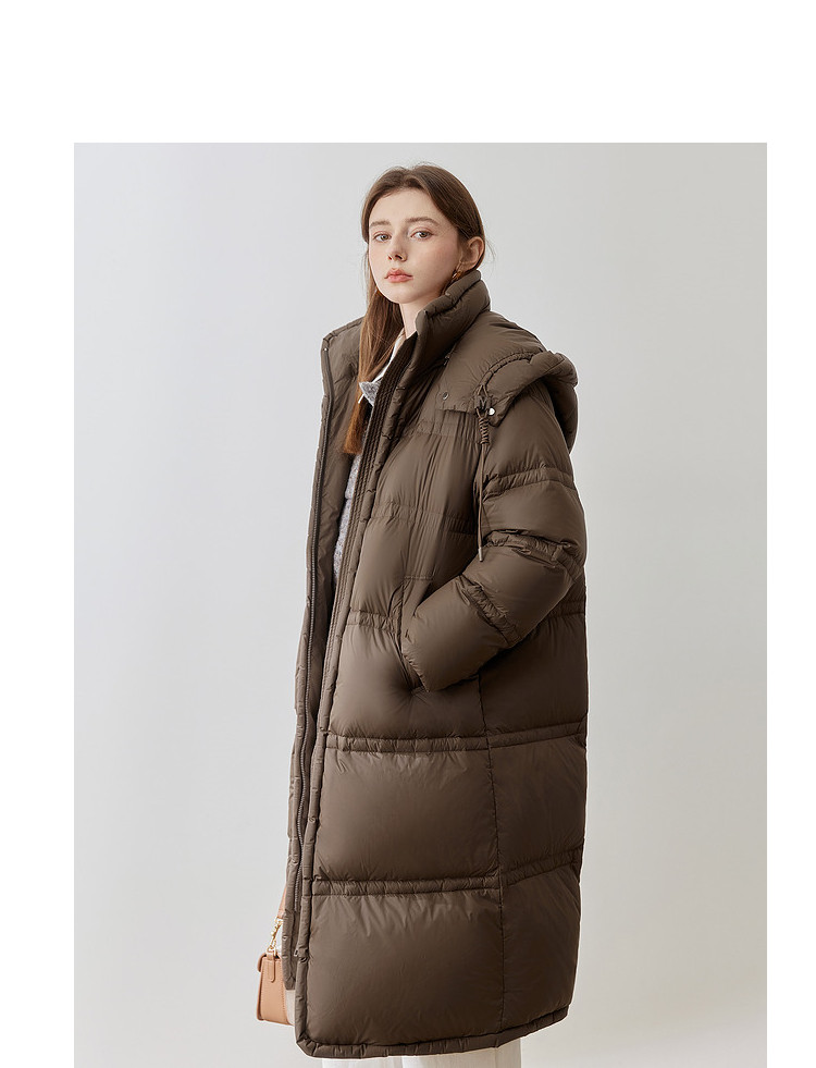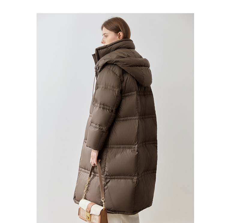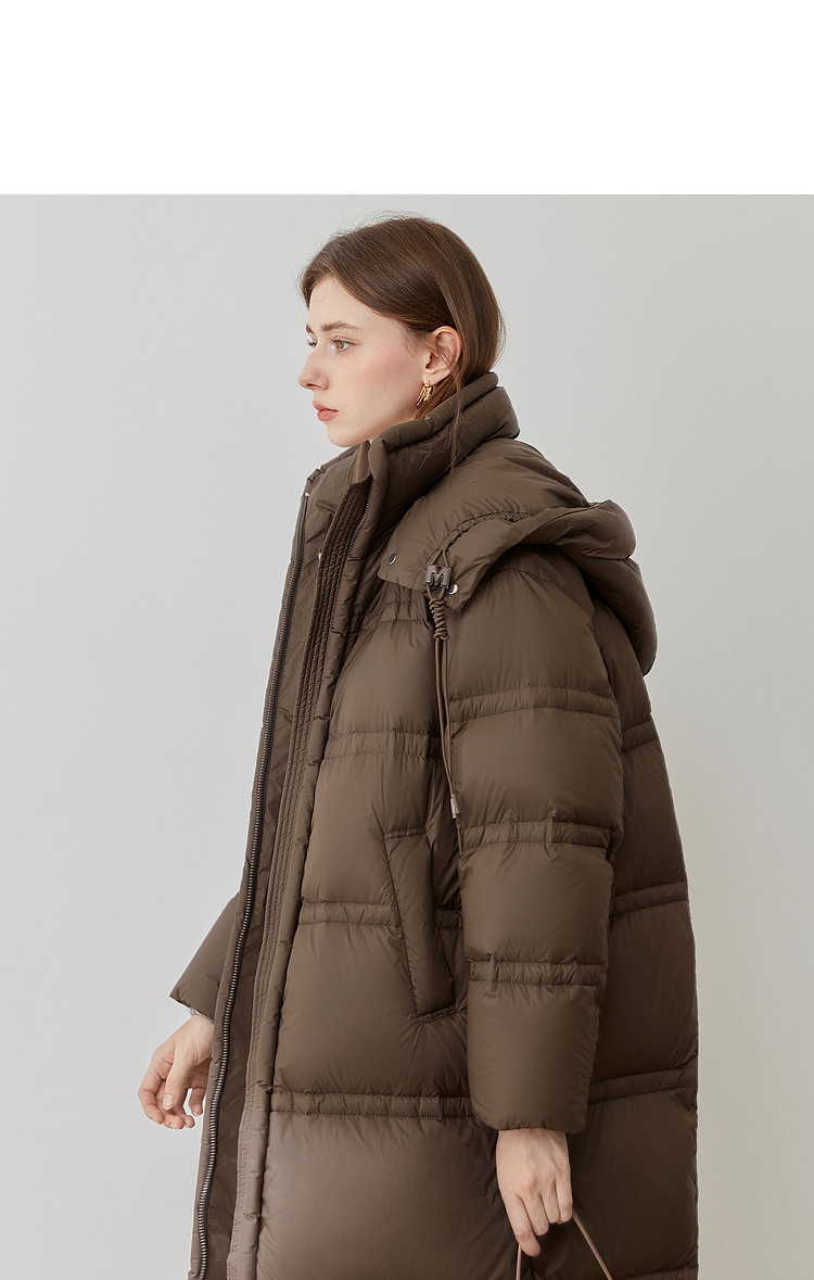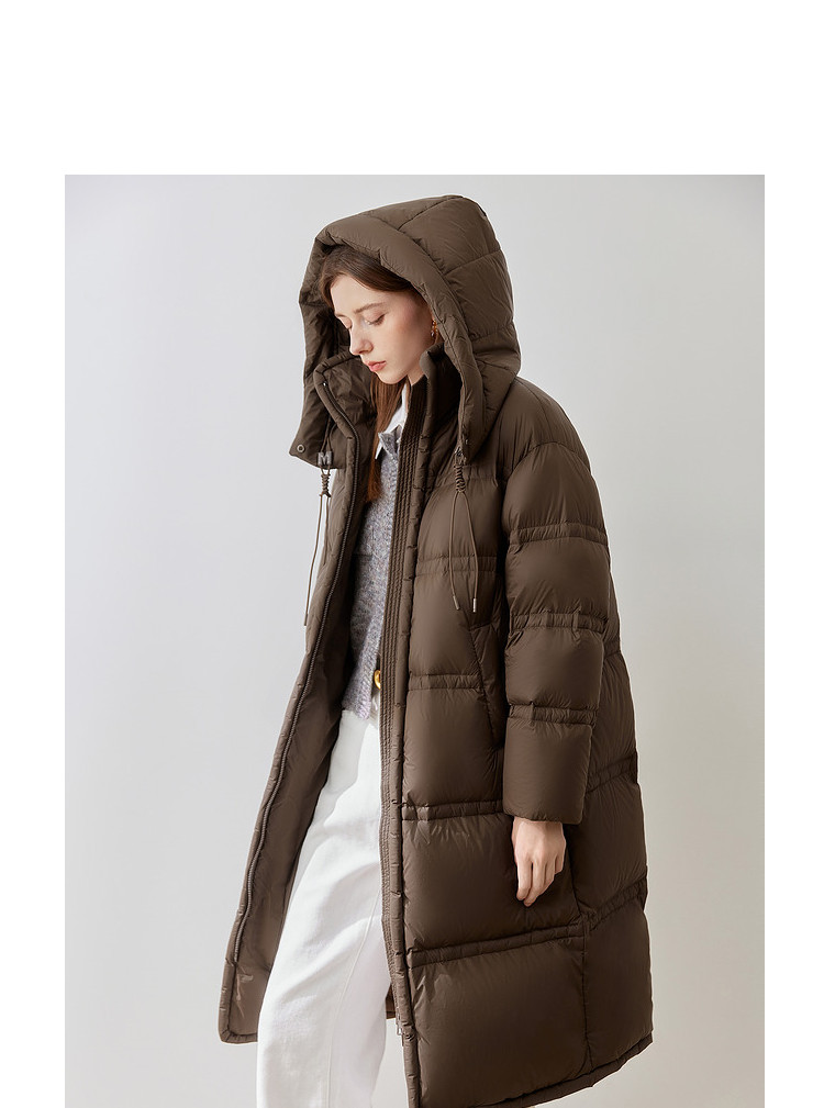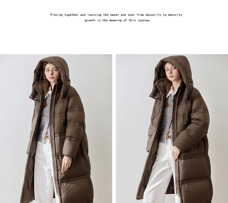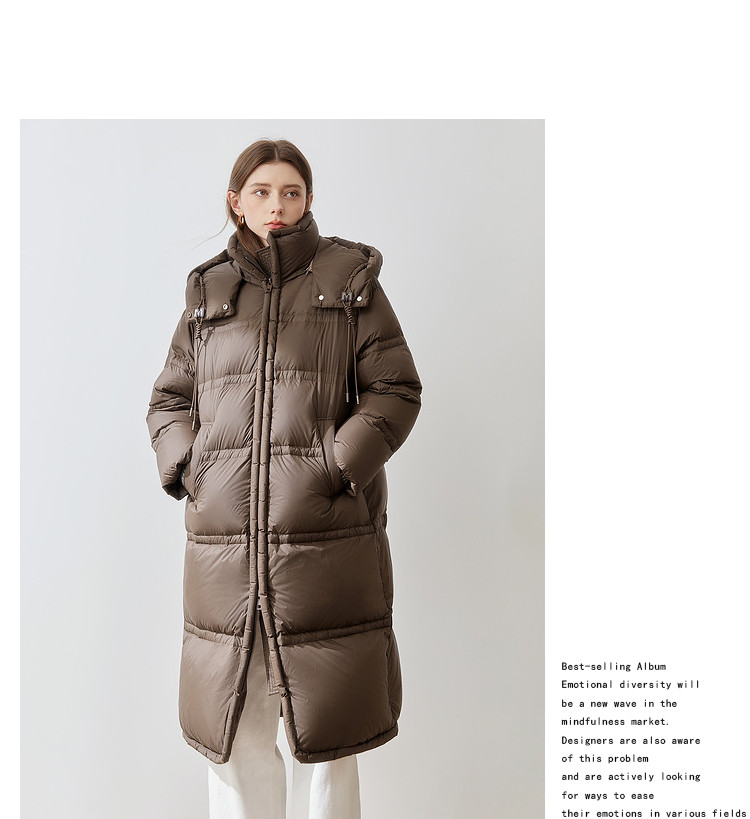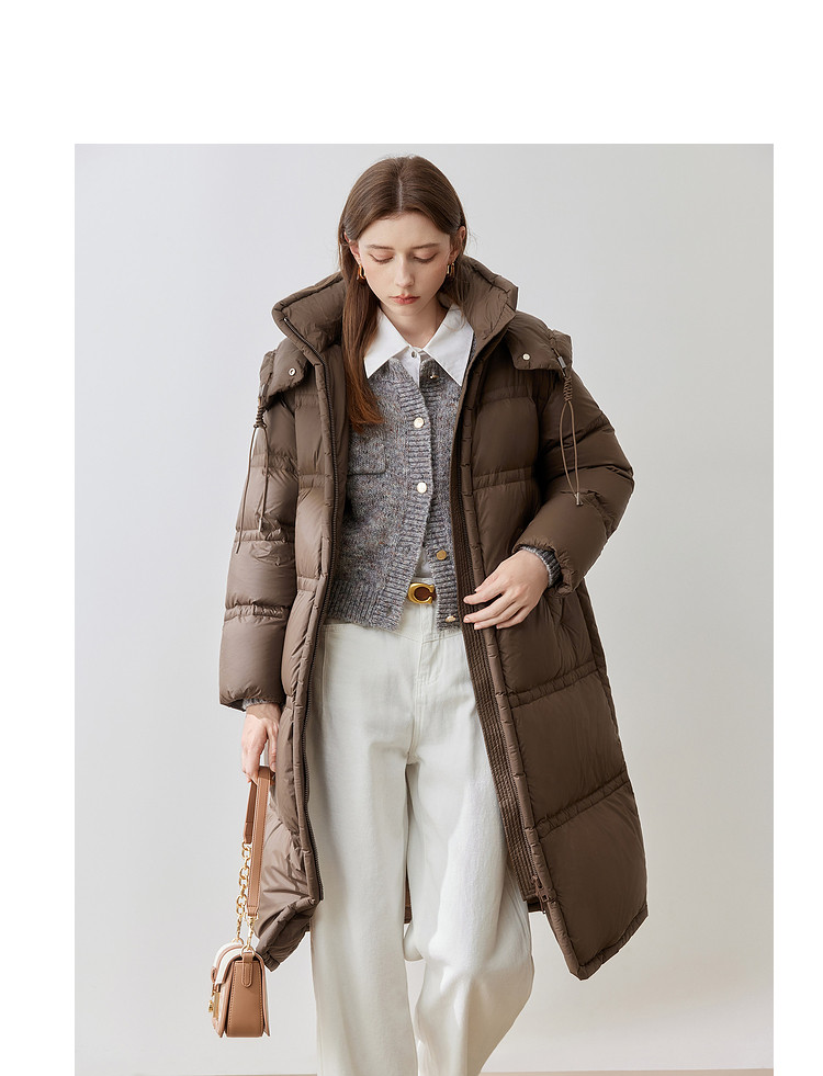 商品名称:【90白鸭绒】2024冬季美拉德中长款宽松连帽羽绒服保暖外套 789908