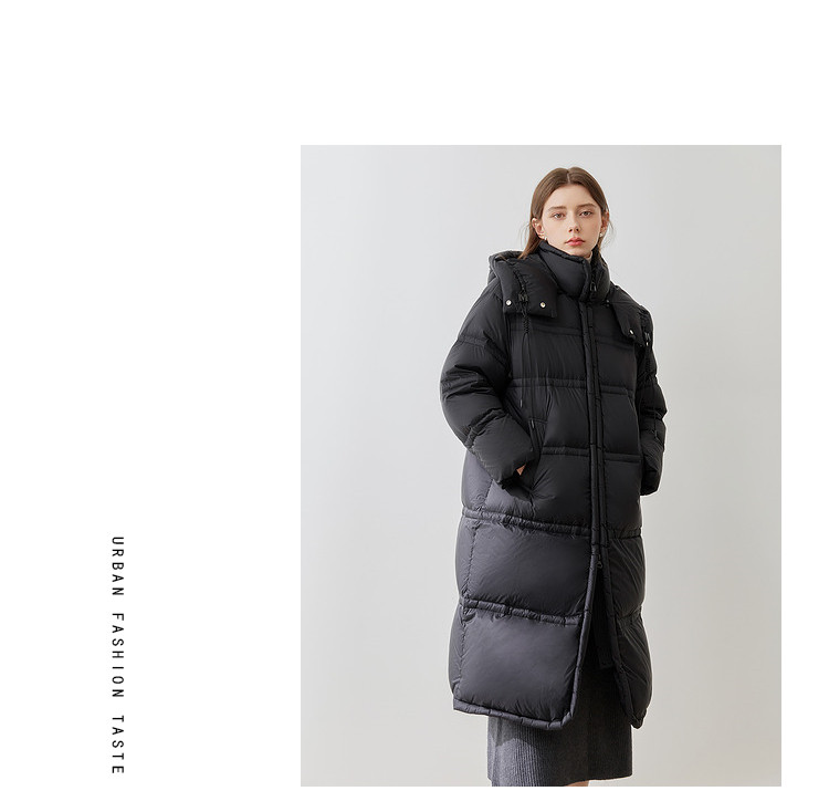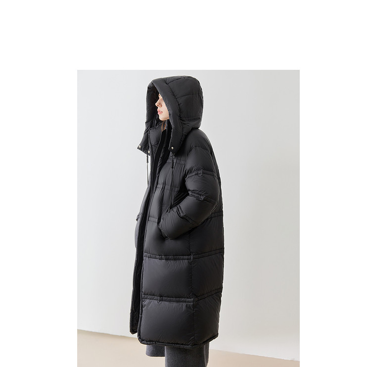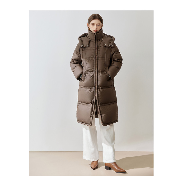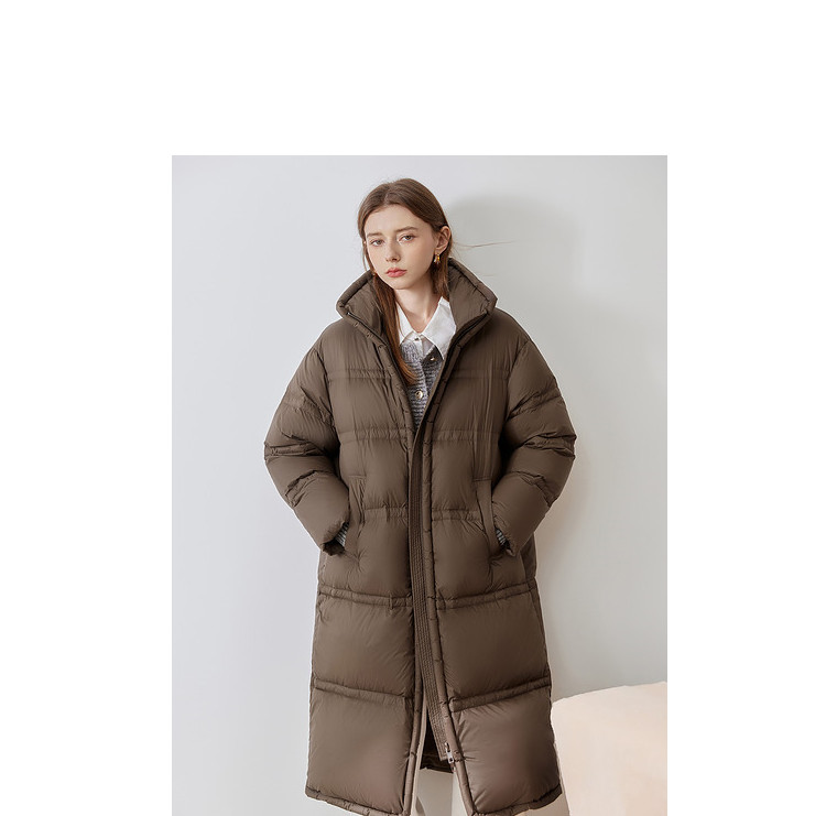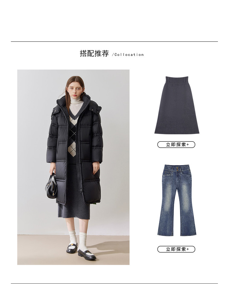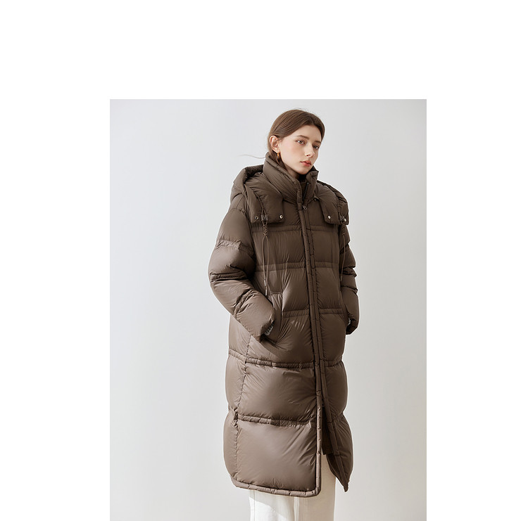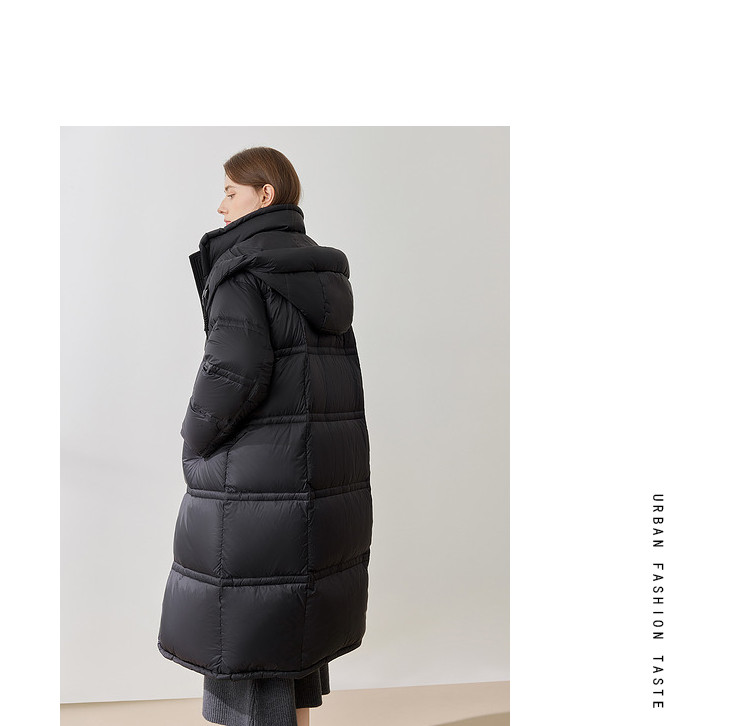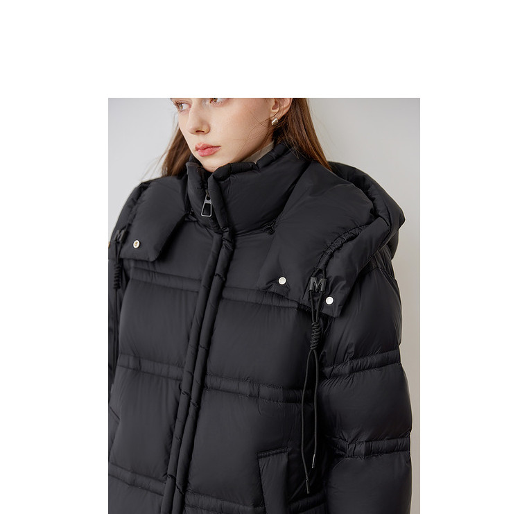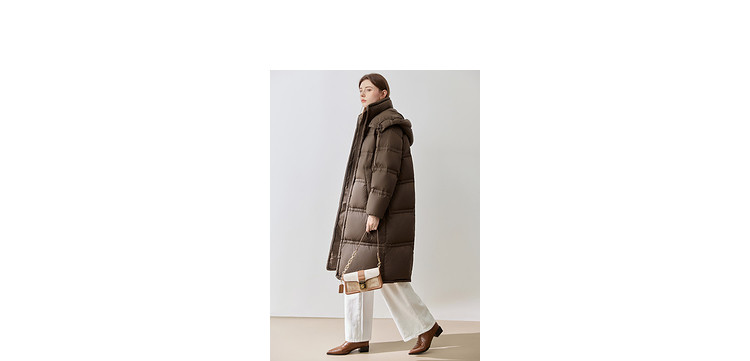 商品名称:【90白鸭绒】2024冬季美拉德中长款宽松连帽羽绒服保暖外套 789908