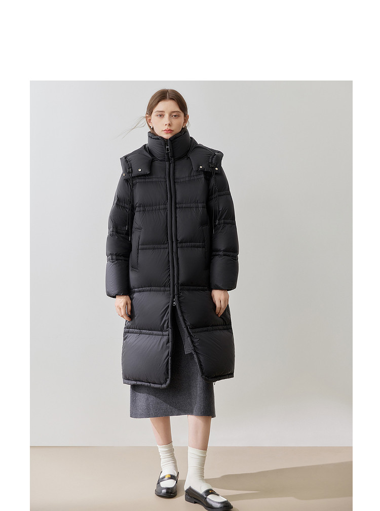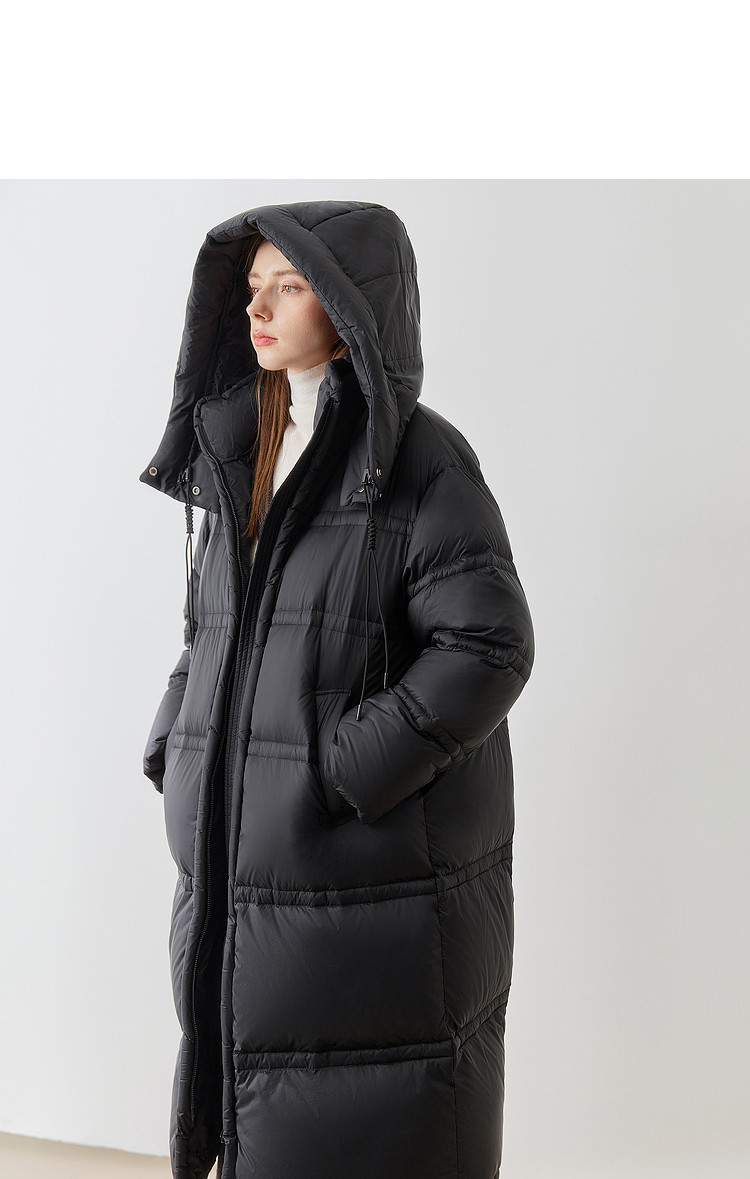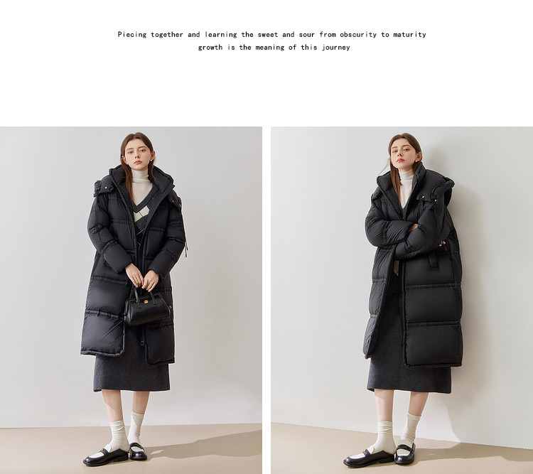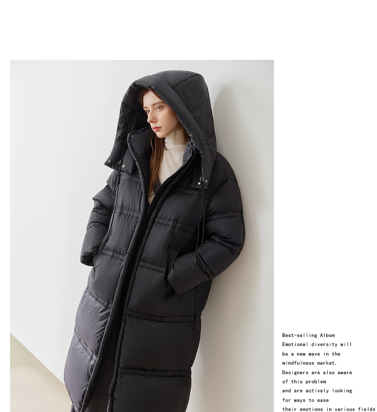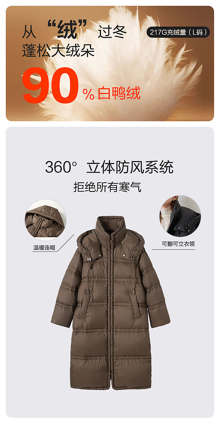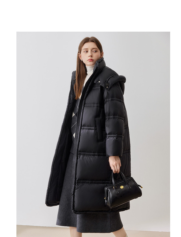 商品名称:【90白鸭绒】2024冬季美拉德中长款宽松连帽羽绒服保暖外套 789908