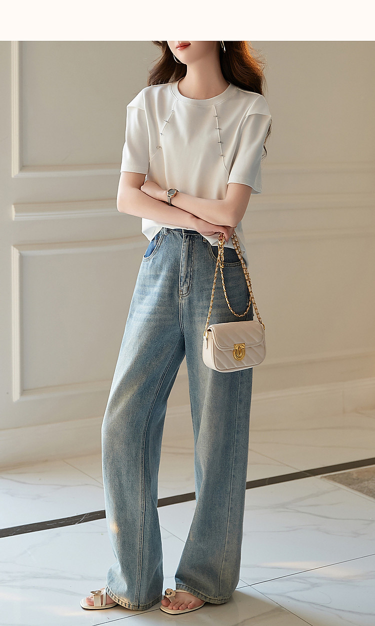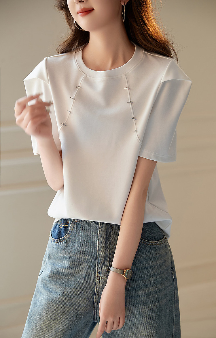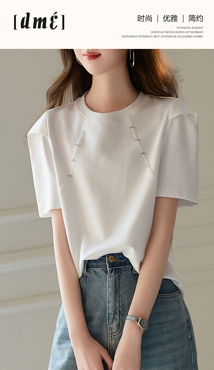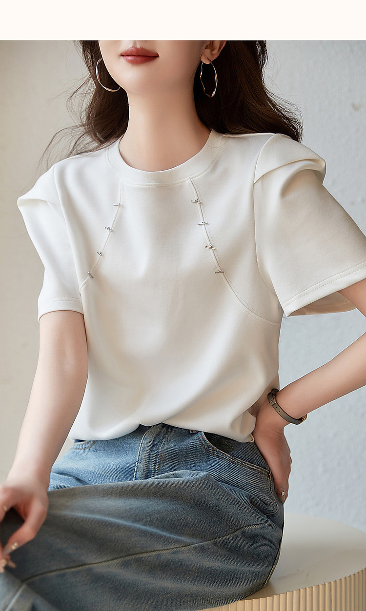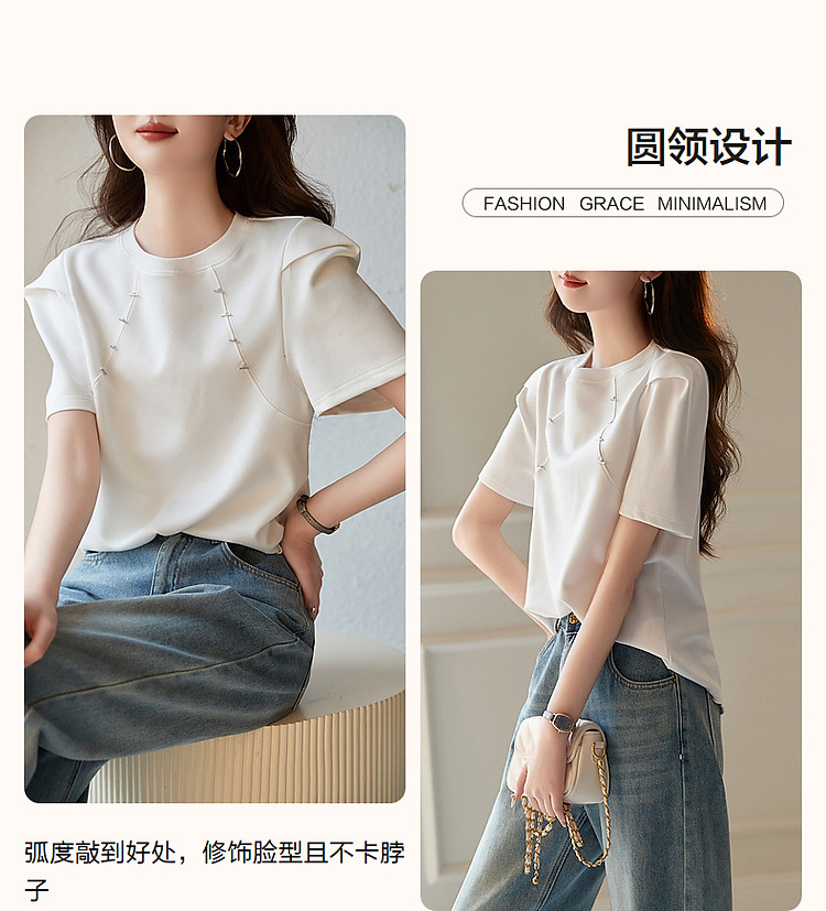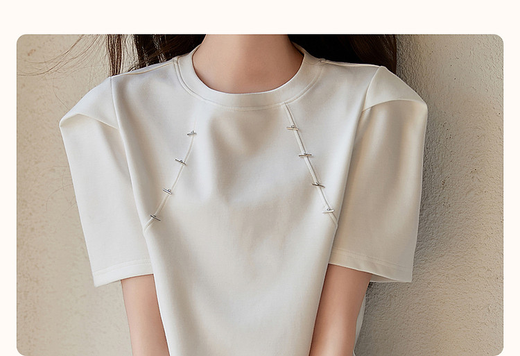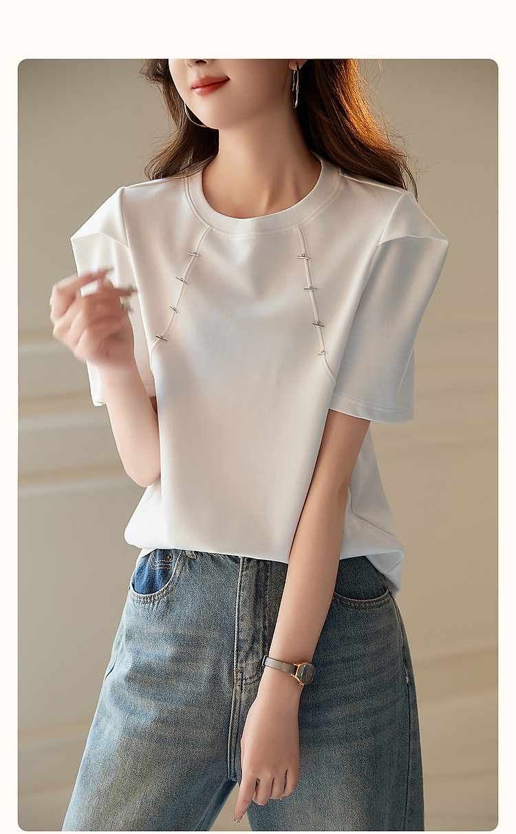 【基础款多季好搭】夏简约风圆领空气层t恤女泡泡袖弹力女式t恤 581633