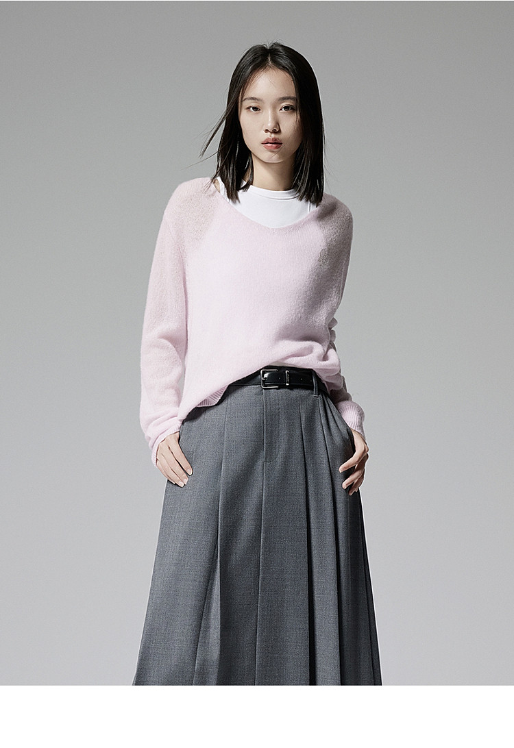 商品名称:春装 软糯轻薄气质桑蚕丝羊绒V领毛衣女 862735