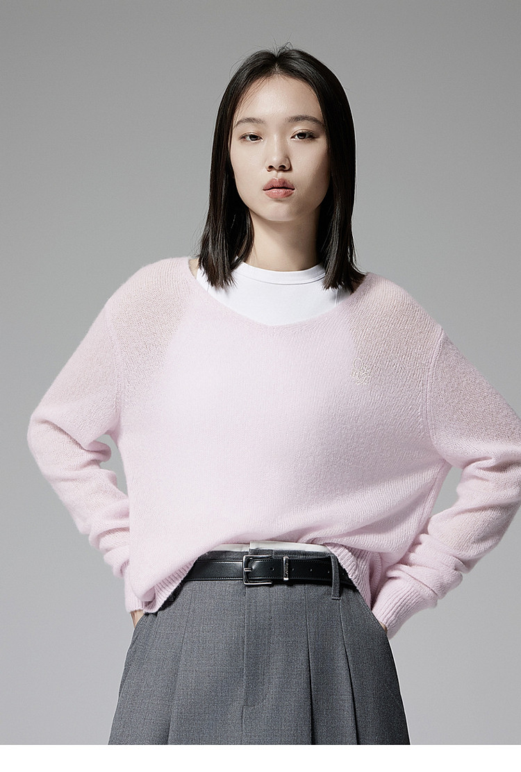 春装 软糯轻薄气质桑蚕丝羊绒V领毛衣女 862735