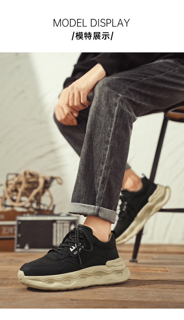男士休闲鞋运动鞋厚底潮流百搭男鞋板鞋复古简约透气工装鞋男 907087