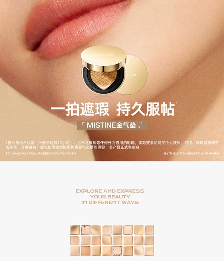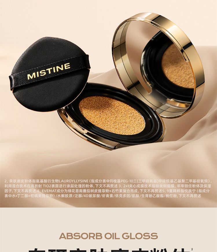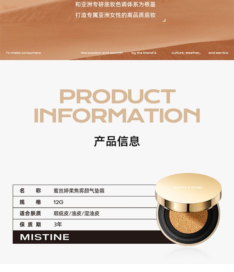 商品名称:Mistine/蜜丝婷 柔绒雾颜气垫霜 12g*2(金气垫2.0遮瑕版)含替换装