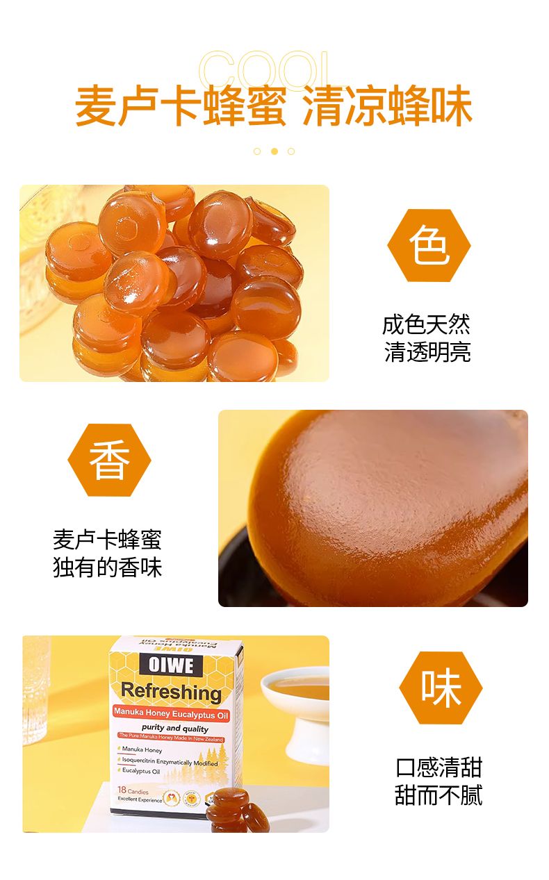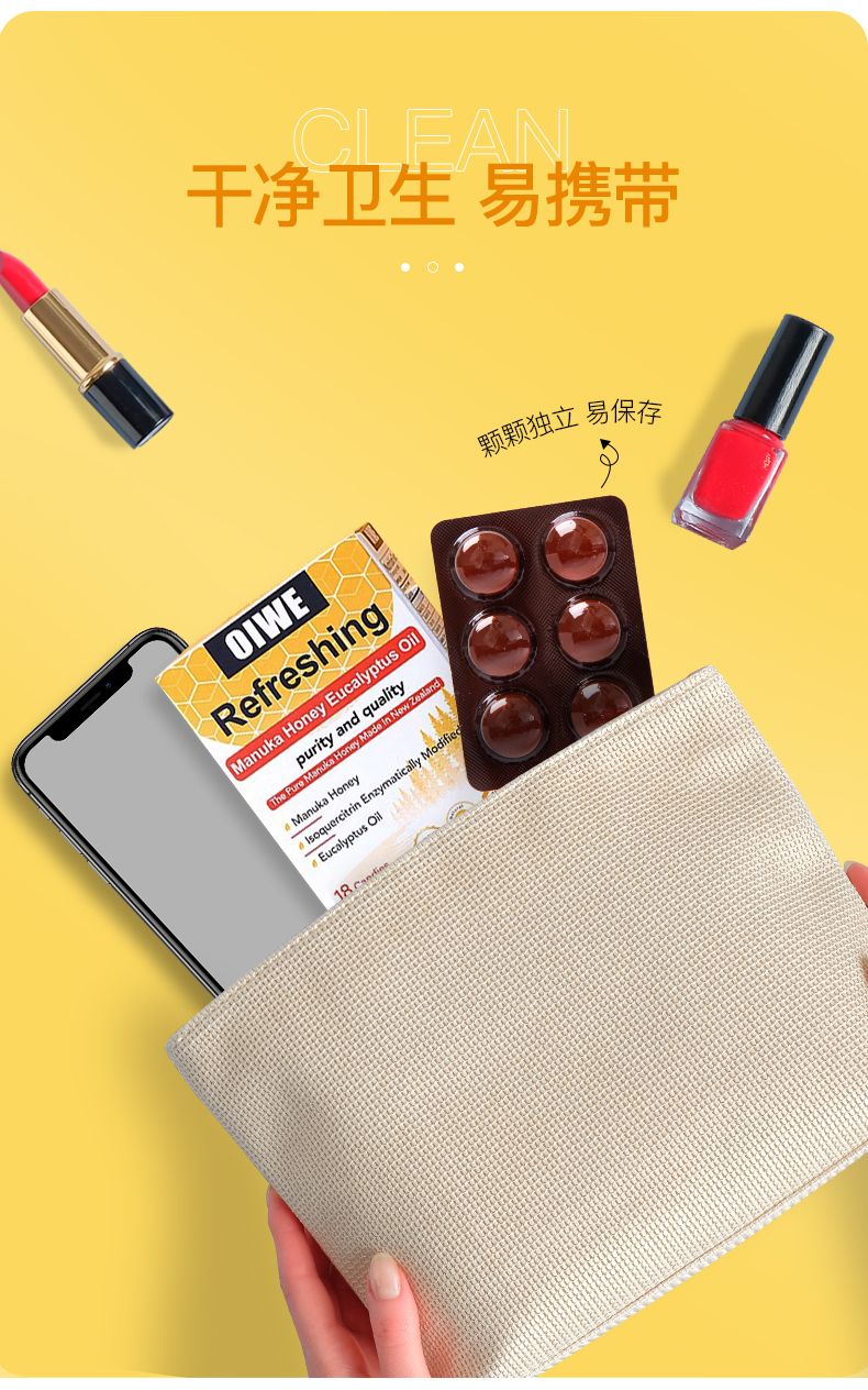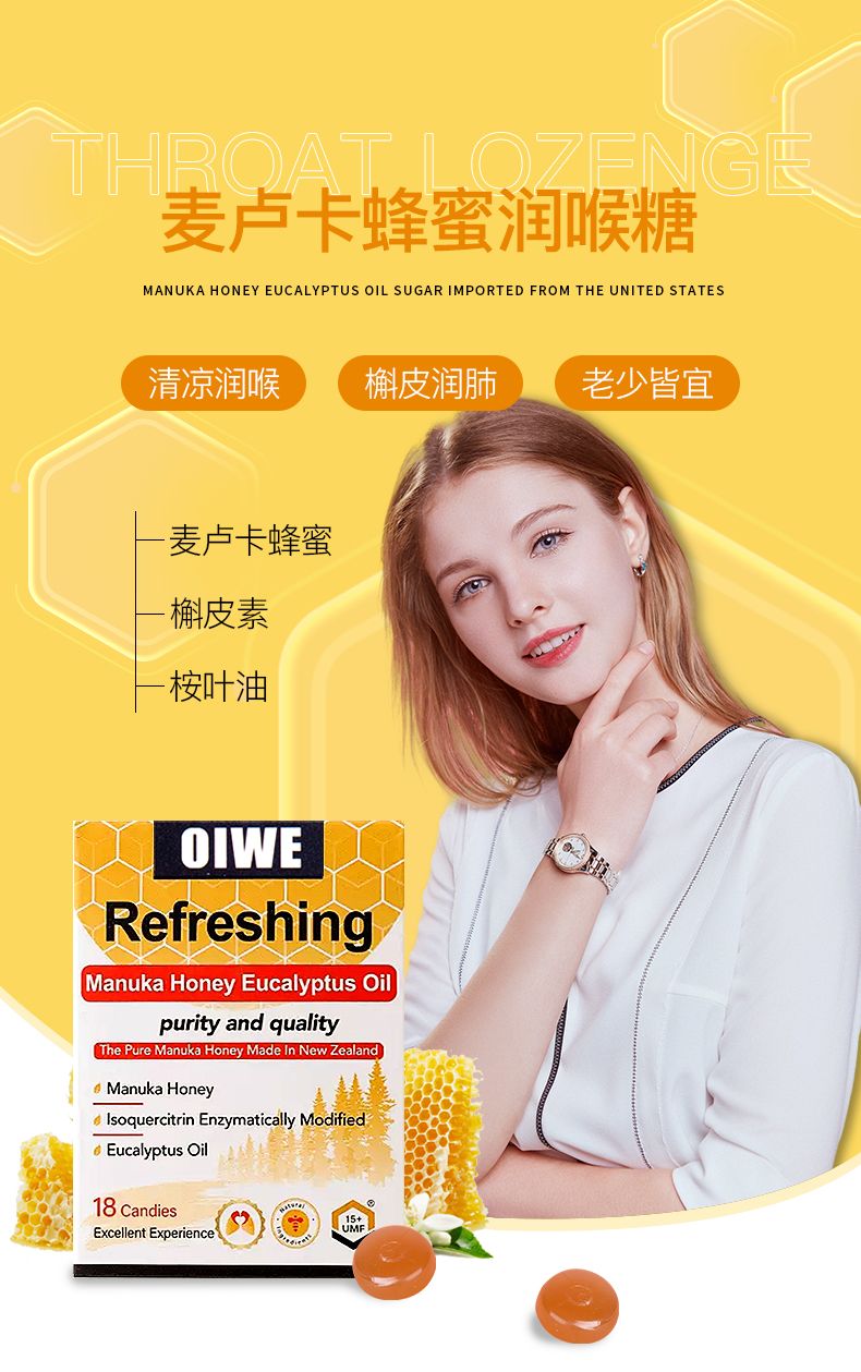 商品名称:OIWE 麦卢卡蜂蜜桉叶油润喉糖 18颗