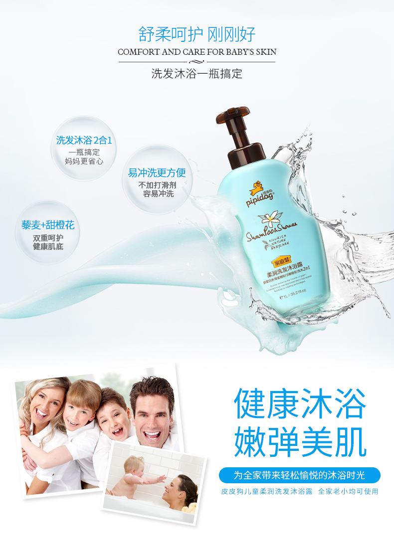 商品名称:皮皮狗PIPIDOG洗沐二合一洗发沐浴露 家庭装1L