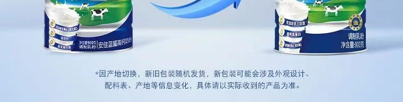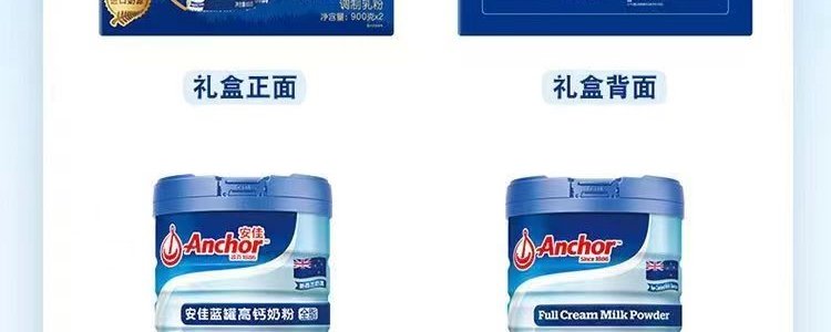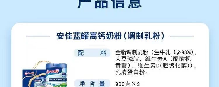 商品名称:【一般贸易】安佳蓝罐高钙全脂奶粉 900g*2罐 【两罐礼盒装】