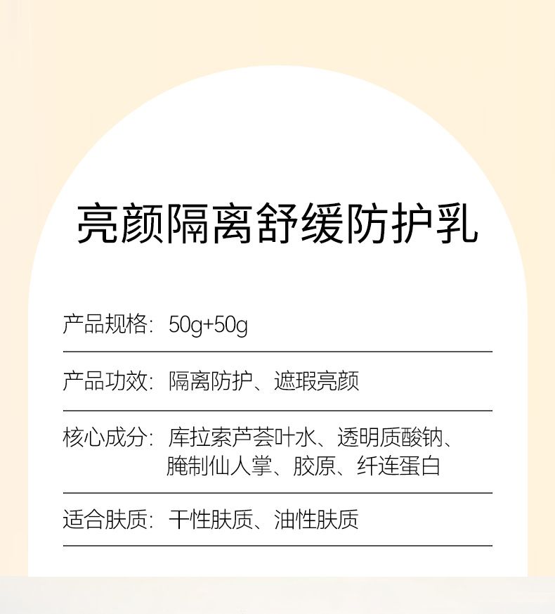 商品名称:Hankey/韩纪 亮颜隔离舒缓防护乳50g+50g 双管设计