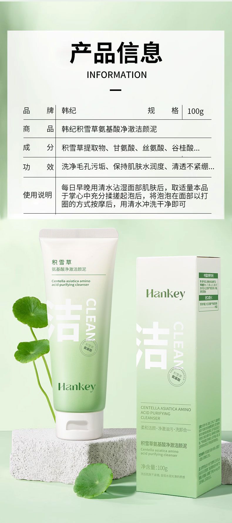 商品名称:Hankey/韩纪 积雪草氨基酸净澈洁颜泥 100g