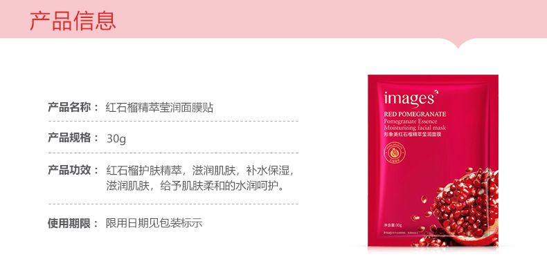 商品名称:形象美红石榴精萃莹润面膜30g 片装