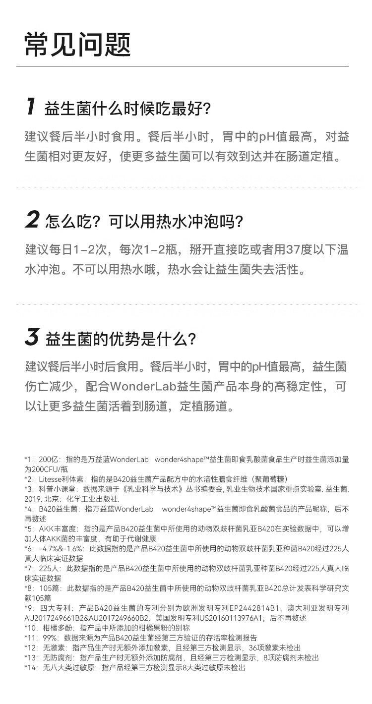 商品名称:万益蓝 WonderLab B420益生菌体重管理即食益生菌