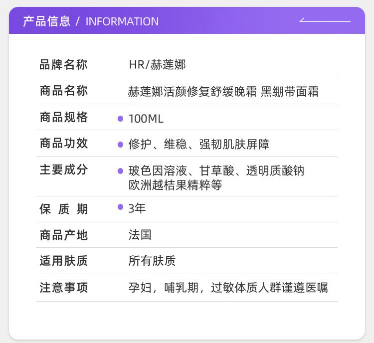 商品名称:【赠礼盒礼袋】HR/赫莲娜 黑绷带面霜100ml+黑绷带眼霜15ml