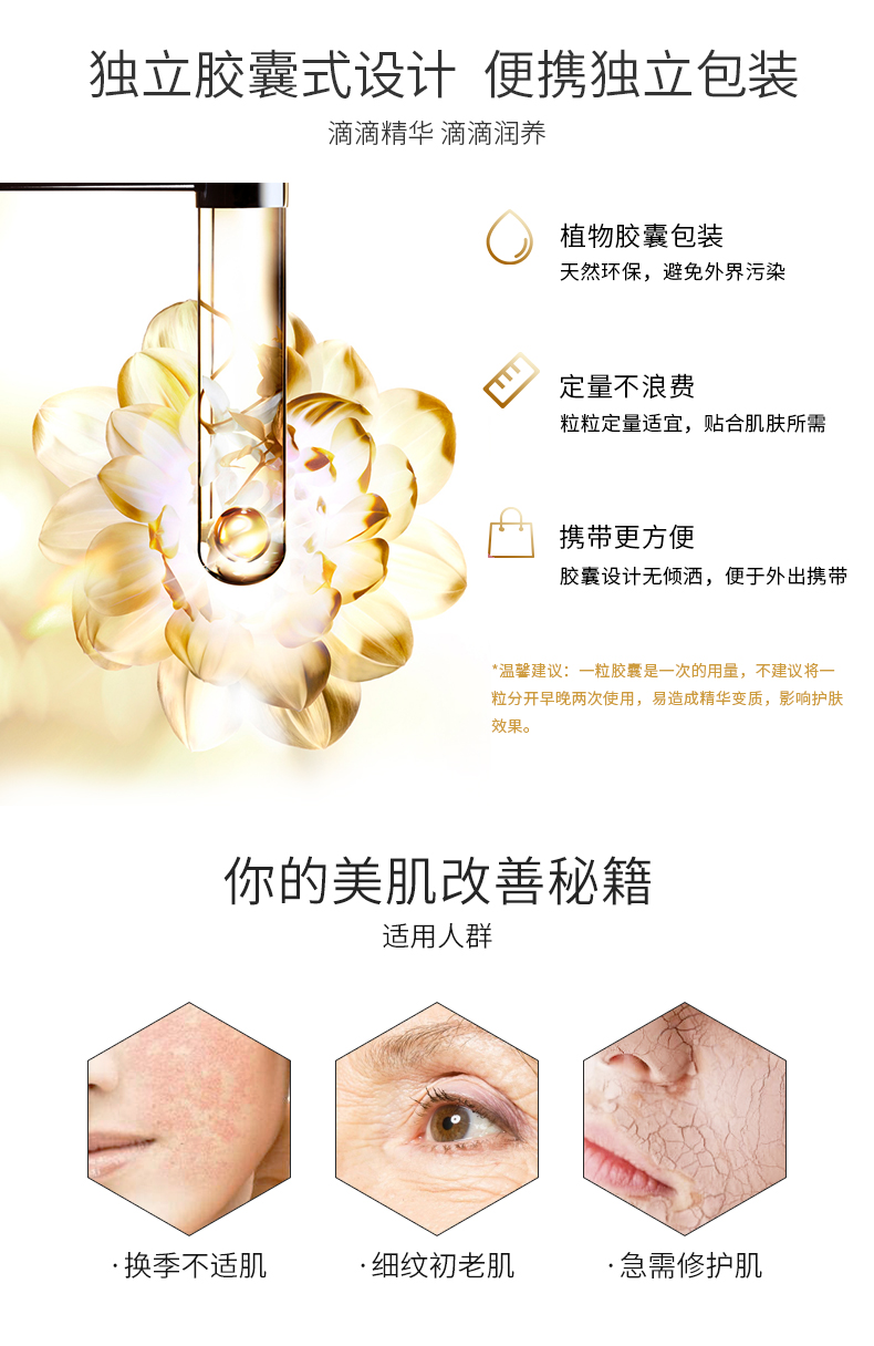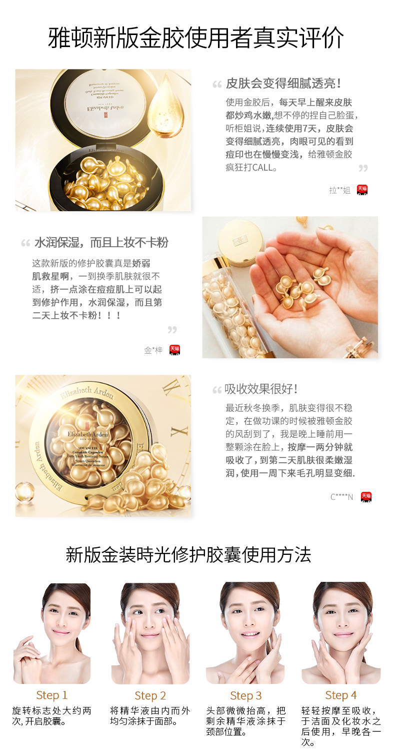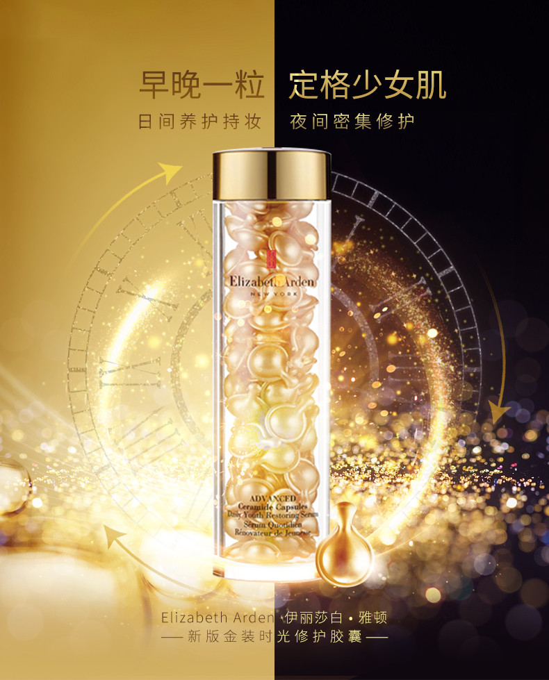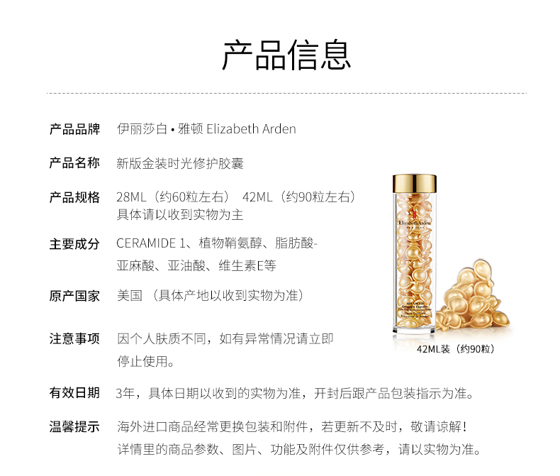 商品名称:Elizabeth Arden/雅顿 时空焕活黄金面部精华胶囊 金胶 7/14粒 包装随机发