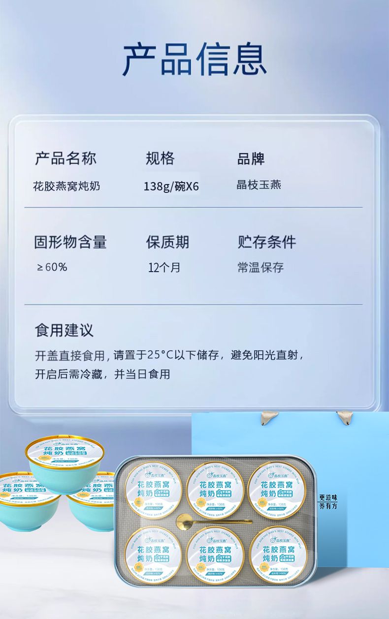 商品名称:晶枝玉燕花胶燕窝炖奶 (礼盒装)