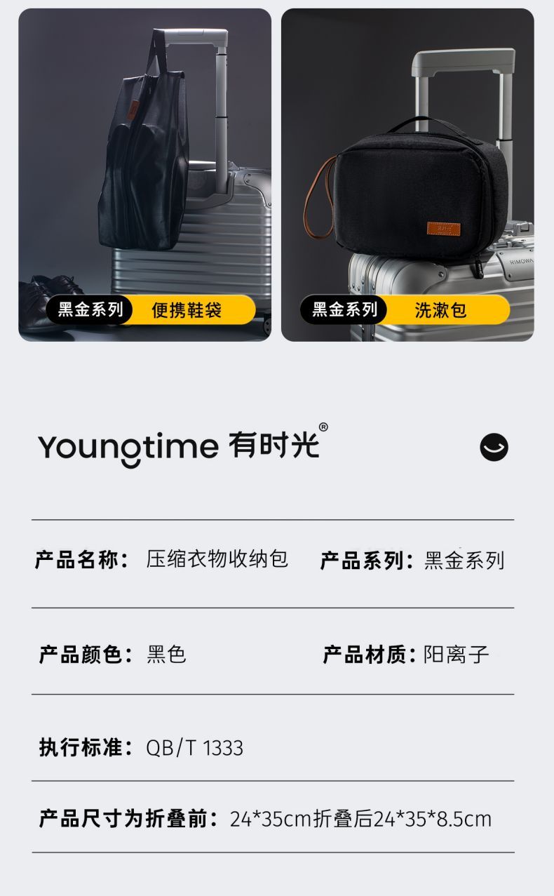商品名称:有时光 压缩收纳包中号 黑金系列