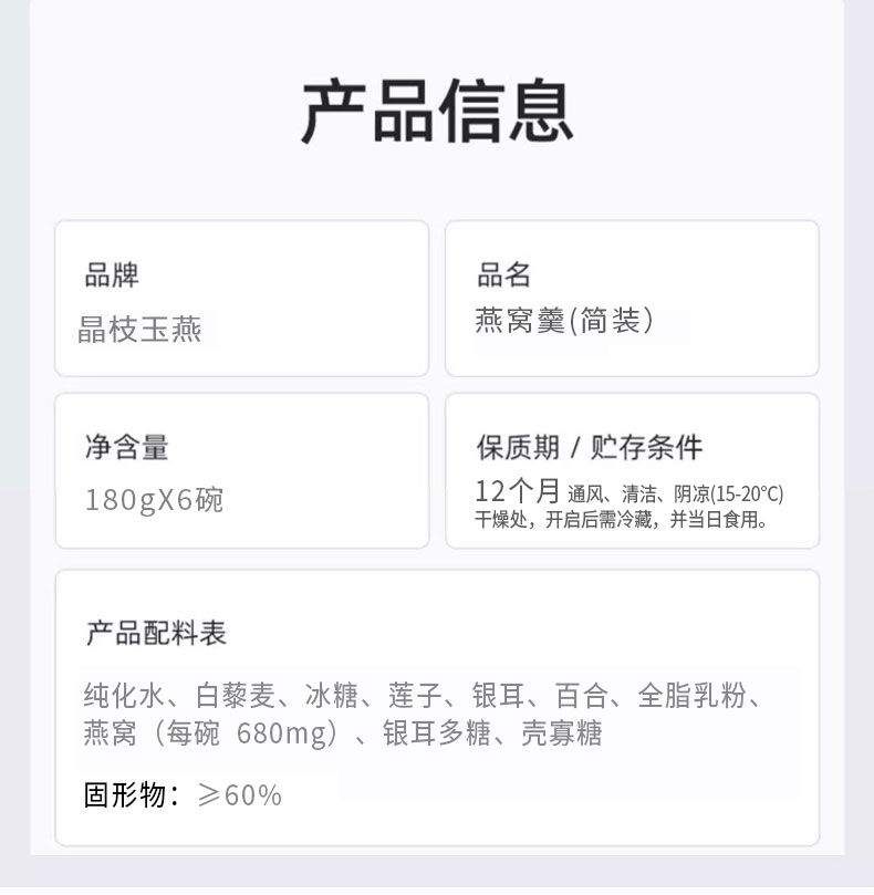 商品名称:晶枝玉燕莲子百合燕窝羹 (简装)