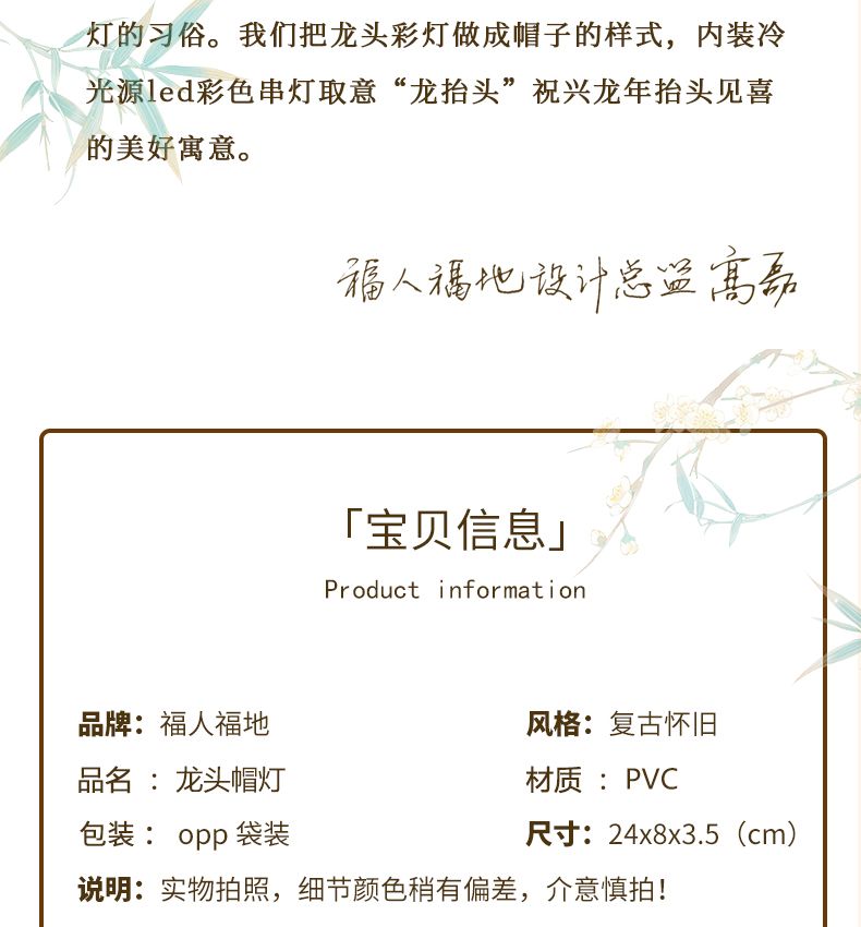 商品名称:福人福地 龙年创意发光龙头帽子(2个装)
