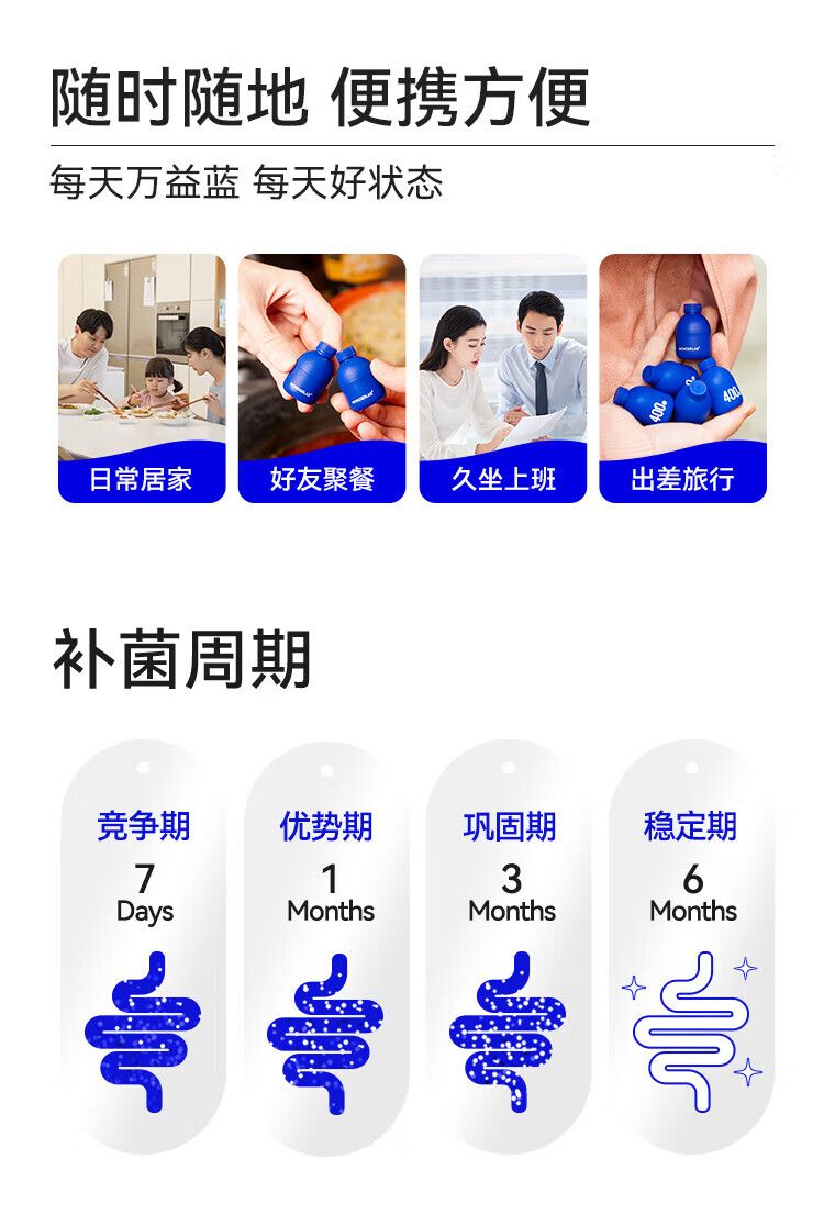 商品名称:万益蓝WonderLab 小蓝瓶益生菌全家桶 双歧杆菌益生菌成人孕期肠胃益生菌调理 礼盒装180瓶3.0